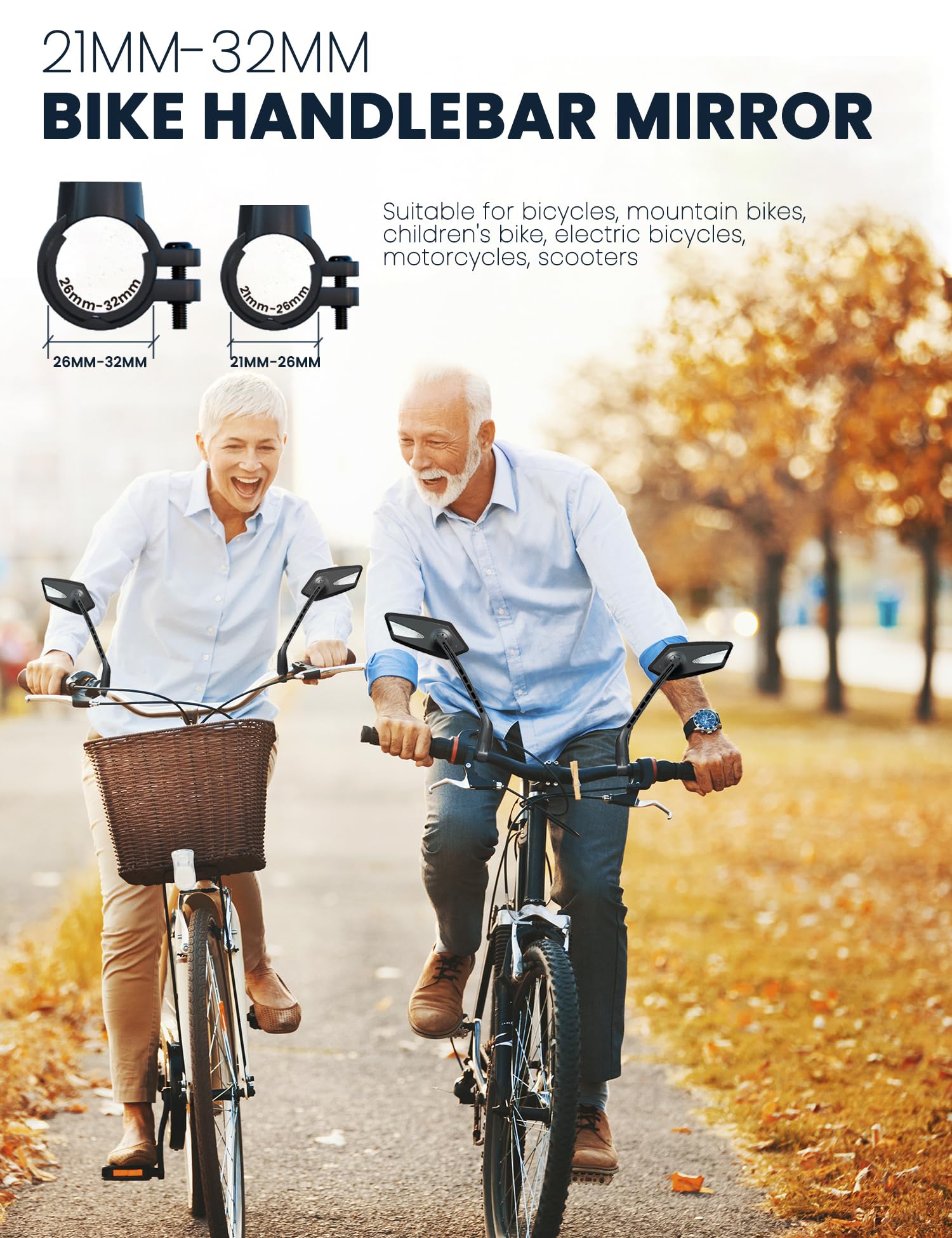 - Upgraded Bicycle Mirrors: Our upgraded bike mirror are designed to fit handlebars from 21 mm to 32 mm (0.83 in- 1.26 in). With an extended mirror stem, you can enjoy a wider field of view while riding on the road, effectively reducing blind spots by up to 30%.