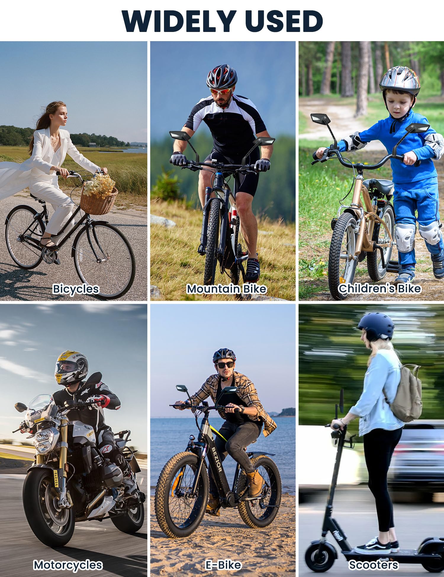 - Wide Application: Our bike mirrors are suitable for handlebars with diameters between 21-32 mm (0.83 inches-1.26 inches), including electric bicycles, mountain bikes, scooters, BMX, electric scooters And use within designated handlebars on any bike to increase your riding pleasure.
