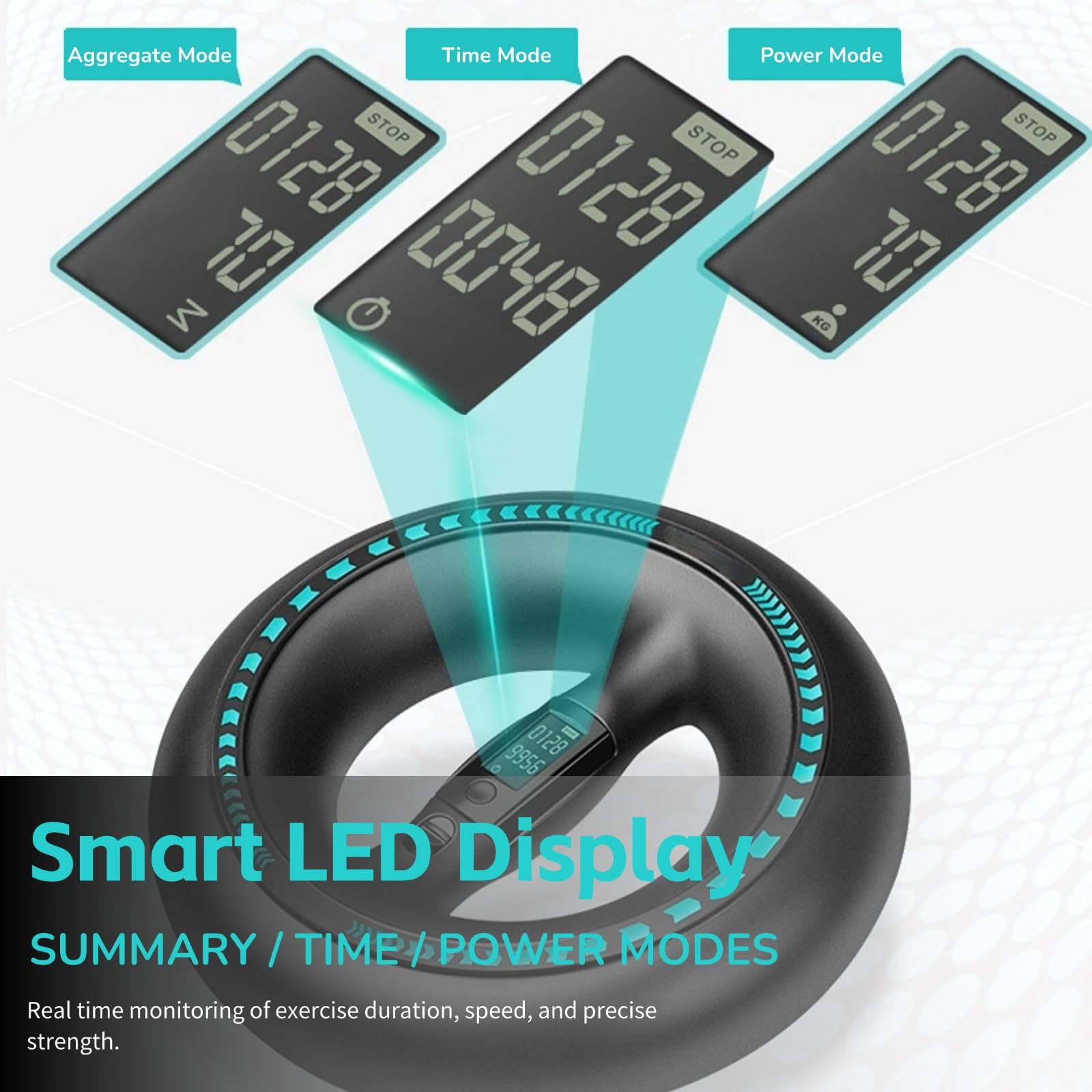 - Smart Display: The arm strengthener ball allows for real time monitoring of exercise duration, speed, and precise strength. Has summary, time, and power modes for a diversified workout. Using Advanced speed sensing technology, the forearm trainer ball accurately records each exercise's duration and changes in strength, allowing for scientific planning of training intensity.