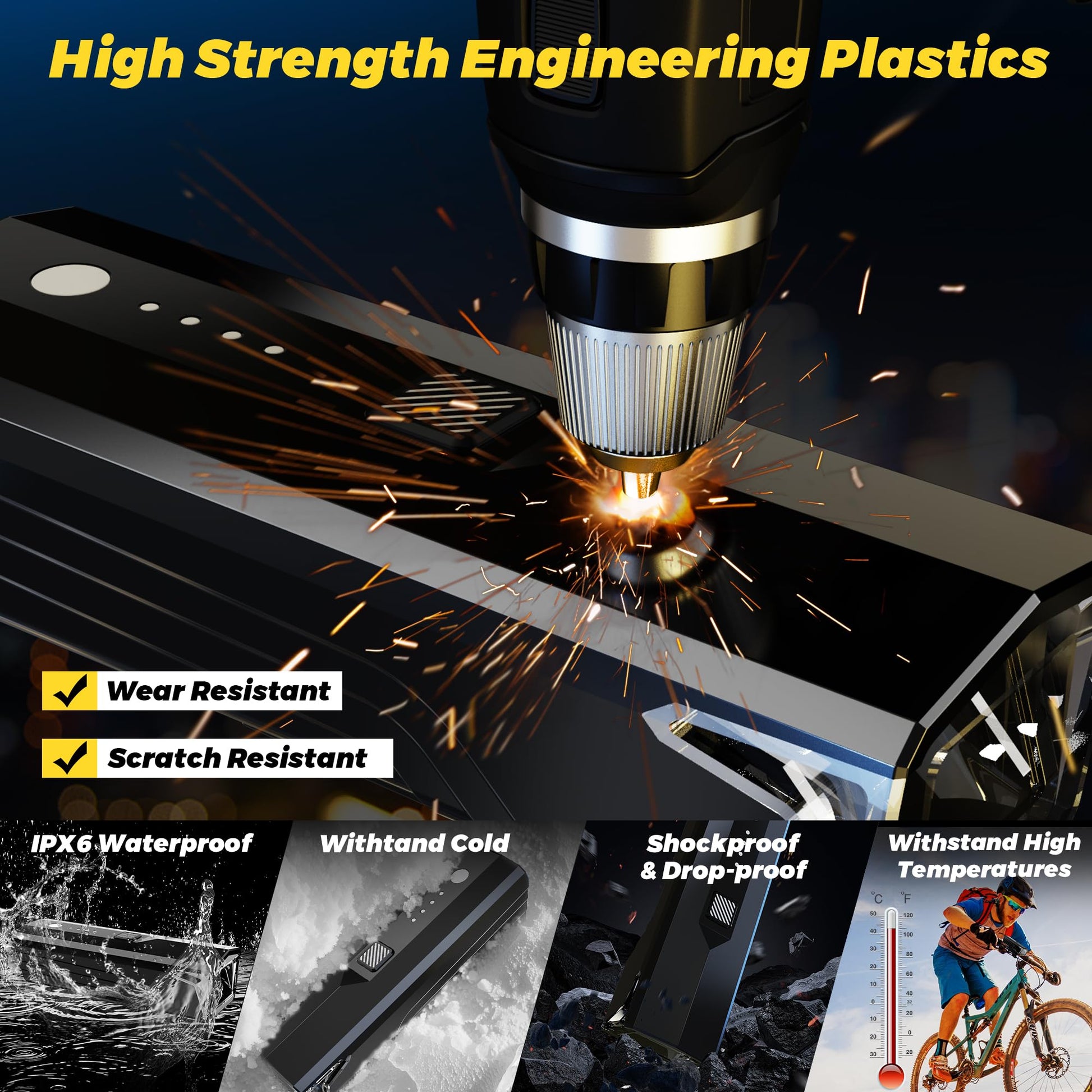 - 【High Strength Engineering Plastic Shell】 This rechargeable bike light is made of high strength engineering plastic, meets IPX6 waterproof standards, which is shockproof and drop-proof, and can withstand cold, high temperatures, ice snow weather. This bike lights front and back will meet all your needs; This mountain bike light is suitable for cycling, fishing, running, dog walking, hiking, camping, family outdoor activities