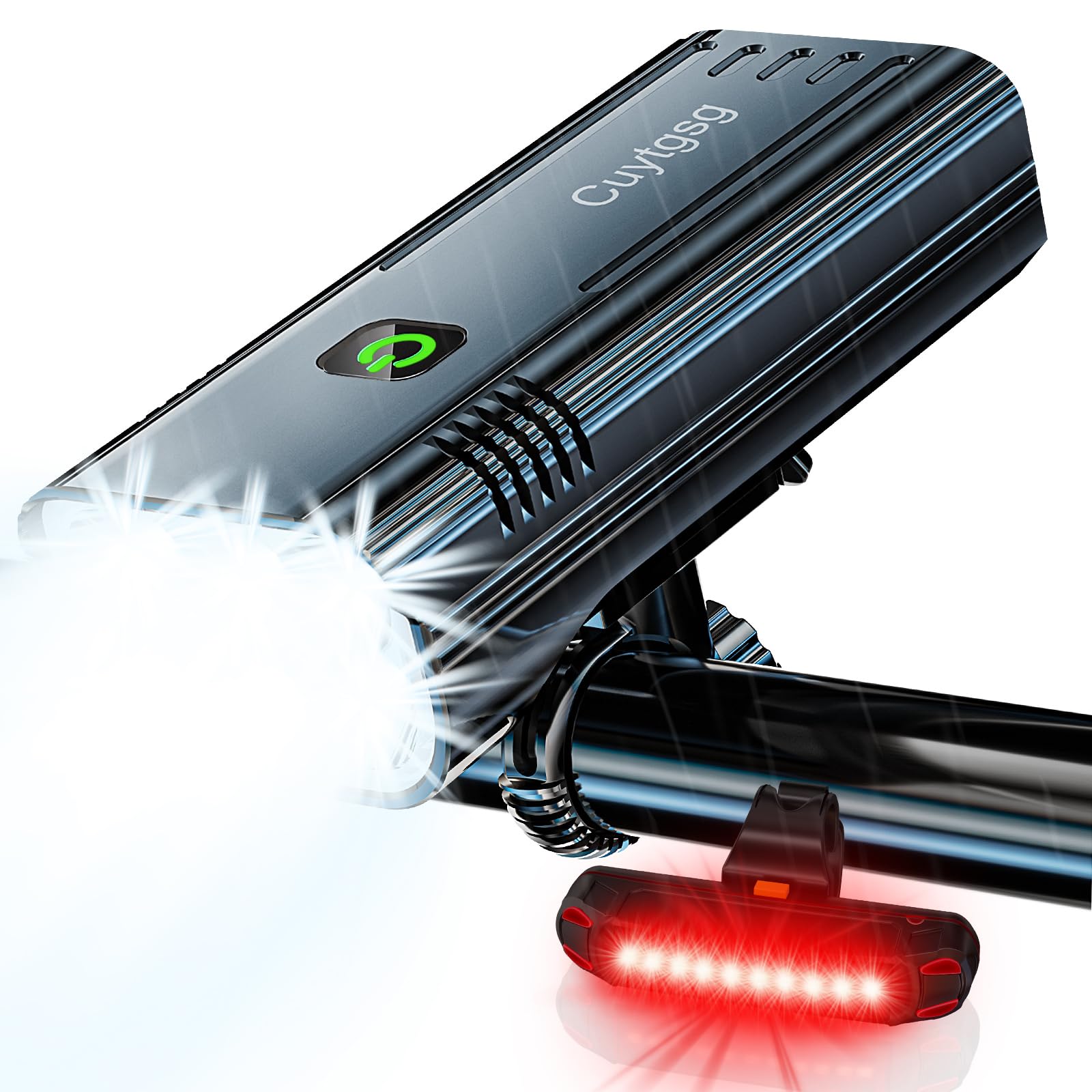 - QUICK INSTALLATION: high lumens bike headlight with 360° Rotating Bracket ,If the bracket is damaged, you can tell us for replacement through Amazon orders. the taillights can reflect light to warn vehicles coming from behind when there is no electricity, which can make you more visible to others and keeping you safer at all time