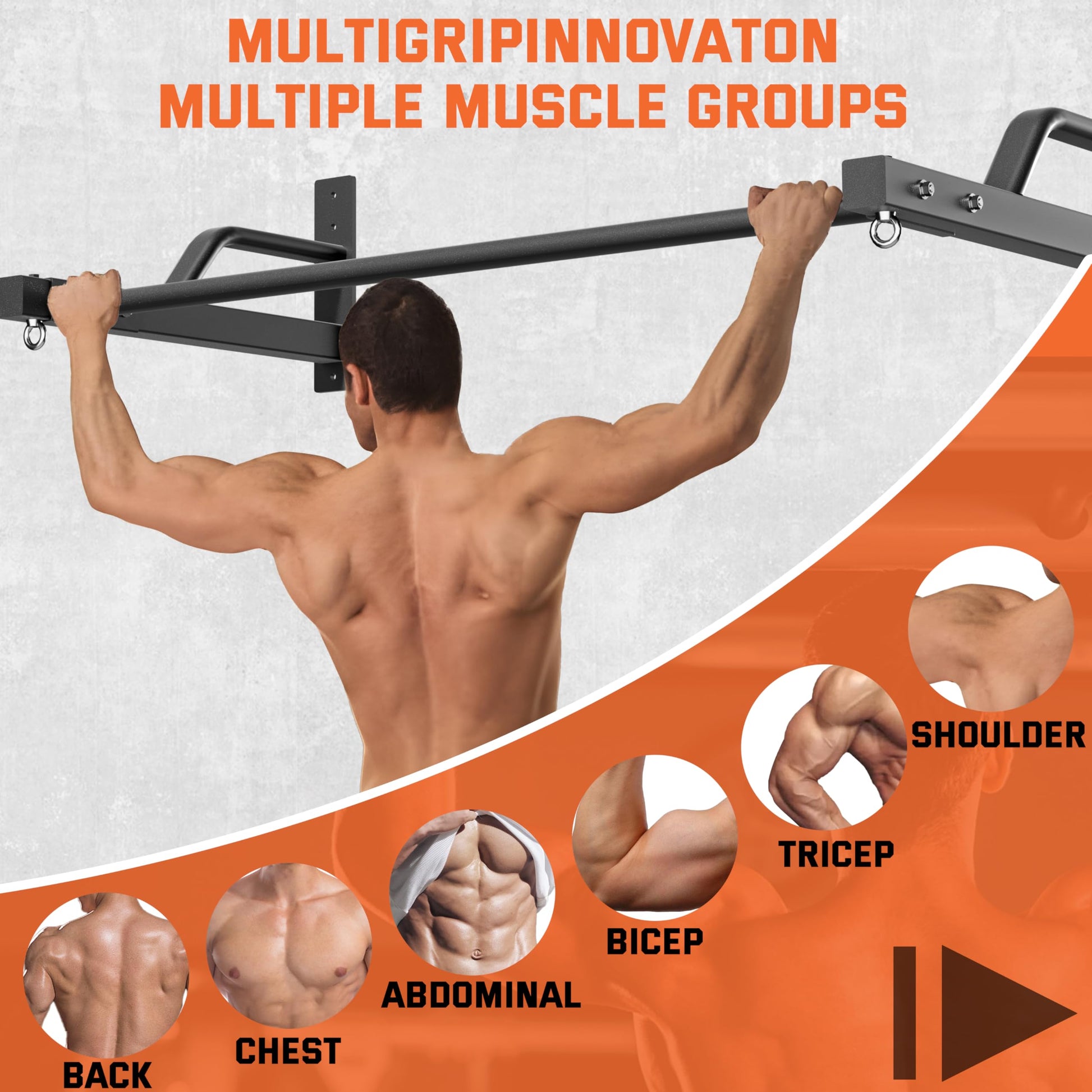 2025 Upgrade Pull Up Bar Wall Mounted - 600 lbs Heavy Duty Strength Training Pull-Up Bars, Ideal Rogue Pull Up Bar for Home and Commercial Gym, Easy Installation Chin Up Bar, Versatile Garage Pullup Bar