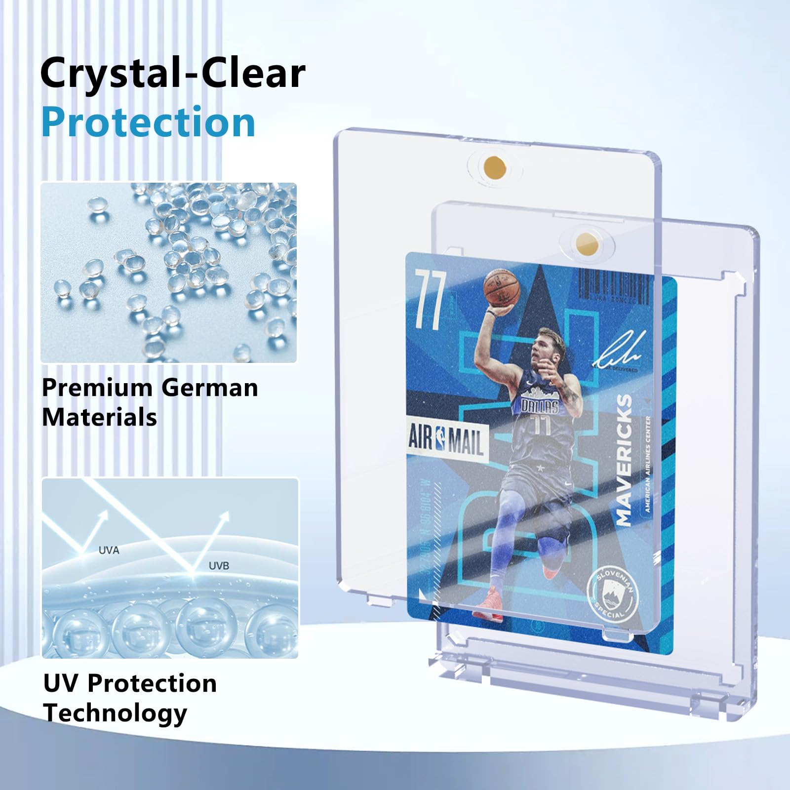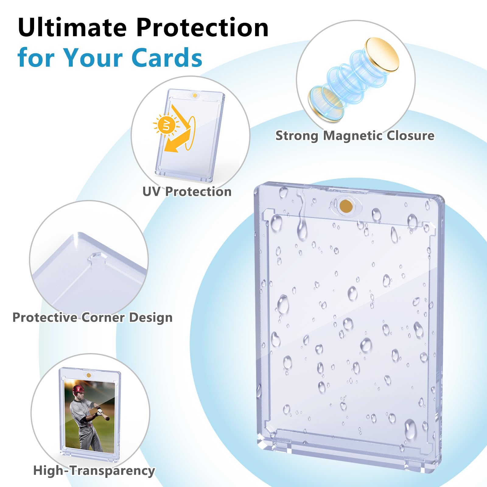 - Premium U-V-Resistant Material:Crafted from high-quality, U-V-resistant materials, this card display case not only looks sleek but also protects your cards from fading, scratches, and wear over time. Thanks to the durable card protectors hard plastic, your cards remain in pristine condition, even with frequent use.