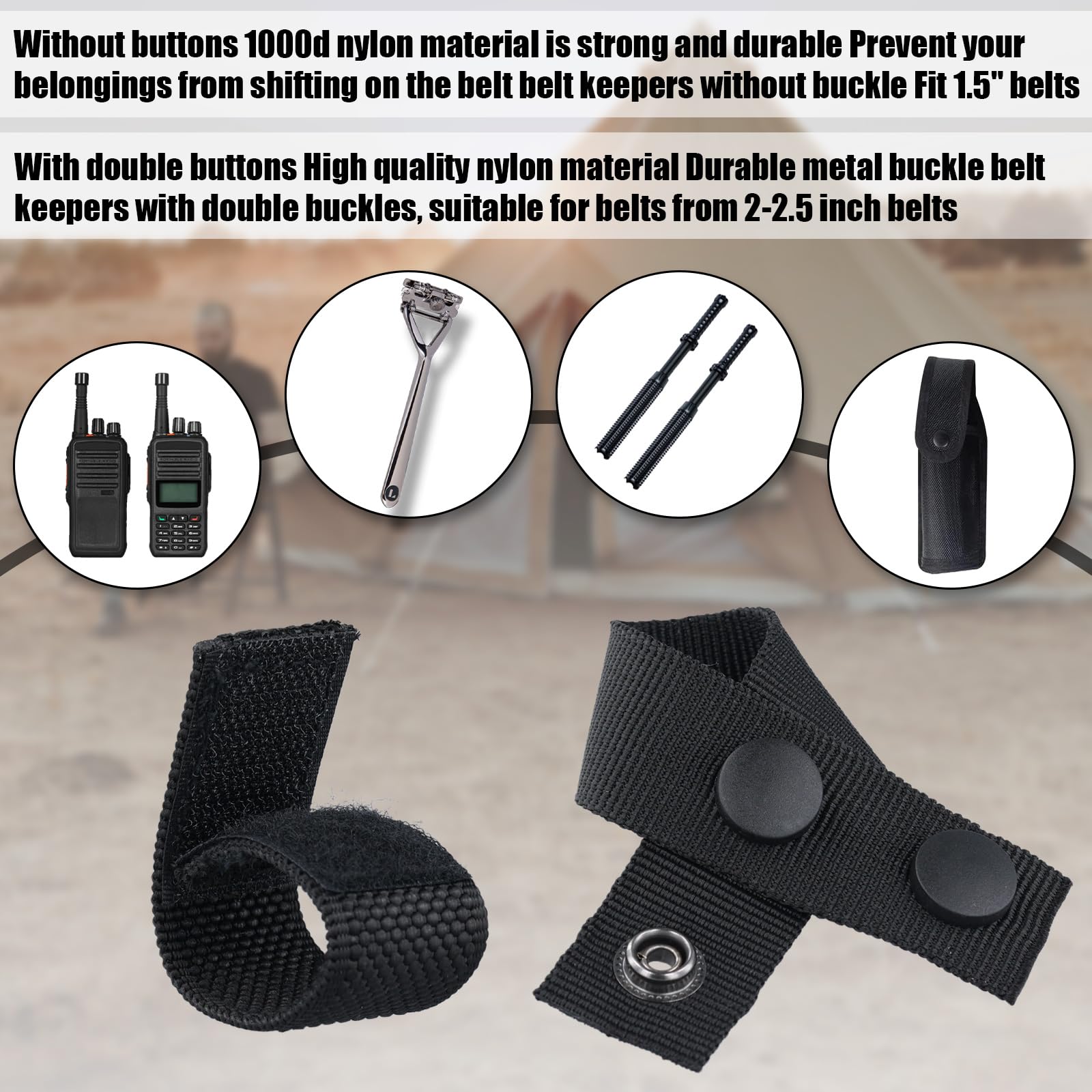 - Premium Material: Duty belt keepers are made of great nylon, metal buttons and magic adhesive. They are reliable, sturdy, long-lasting and comfortable. Metal buttons and magic adhesive will fix your belt well. You can use them for a long time.