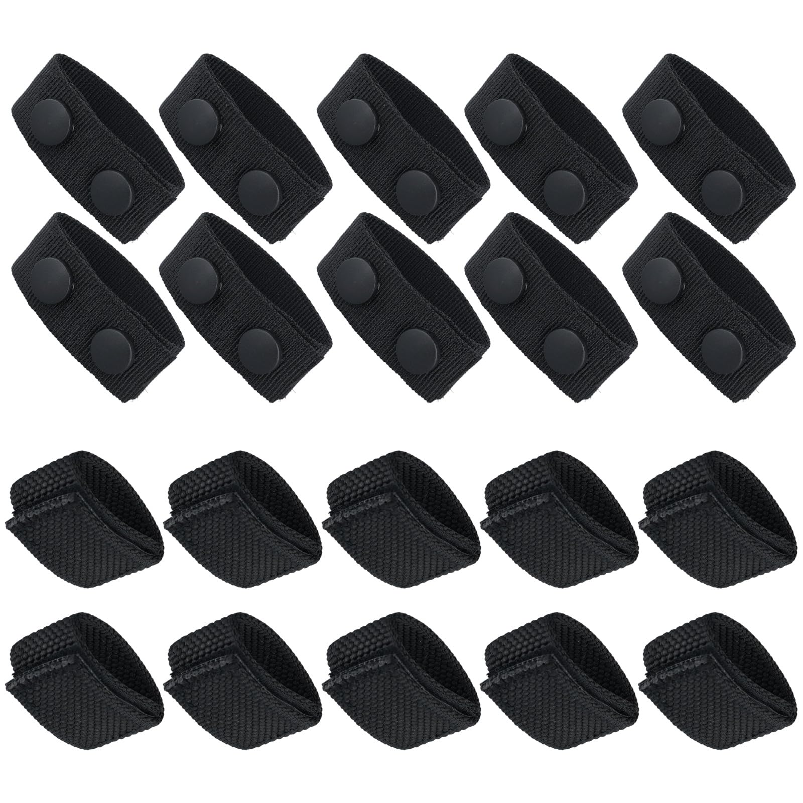 - Package Content: You will get 20 pieces of belt keepers for duty belt in black. There are 2 styles that you can choose, including 10 belt keepers with double snaps and 10 belt keepers with magic adhesive. They will prevent your belongings from shifting on the belt.