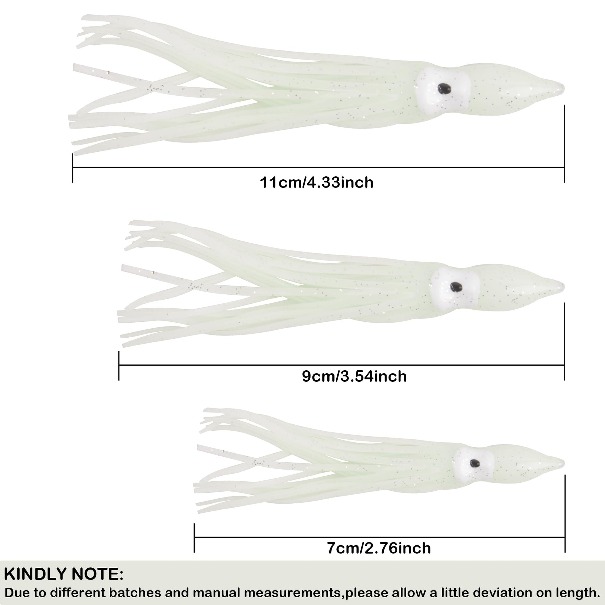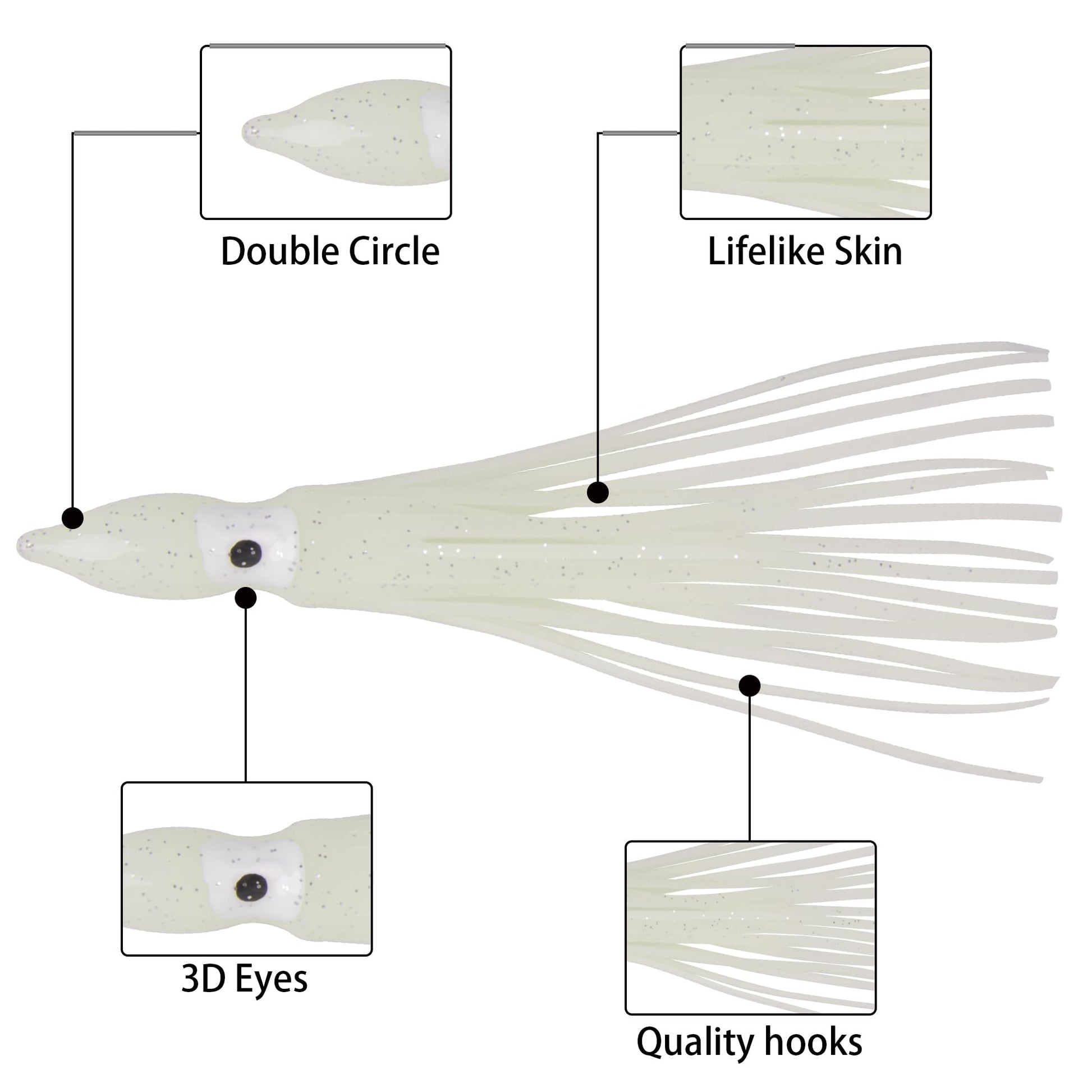 - Like Real Fish - Lifelike soft plastic squid lure body with big eyes, alluring skirts create vivid swimming actions in the water like a real fish squid