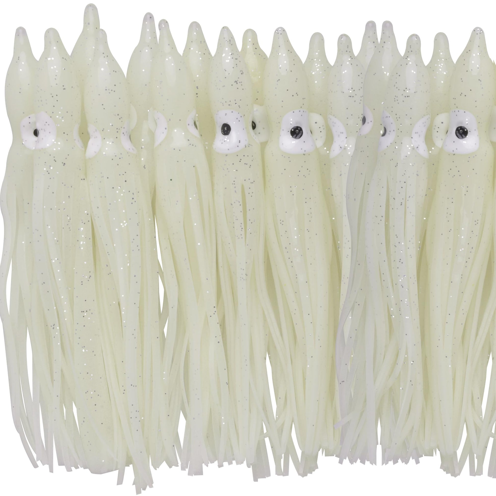 20pcs Fishing Squid Skirts Glow Lures Luminous Octopus Skirts Trolling Lure Saltwater Soft Plastic Bait Fish Squid Silicone Lure Baits Bass Fishing Tackle Accessories Length White 11cm