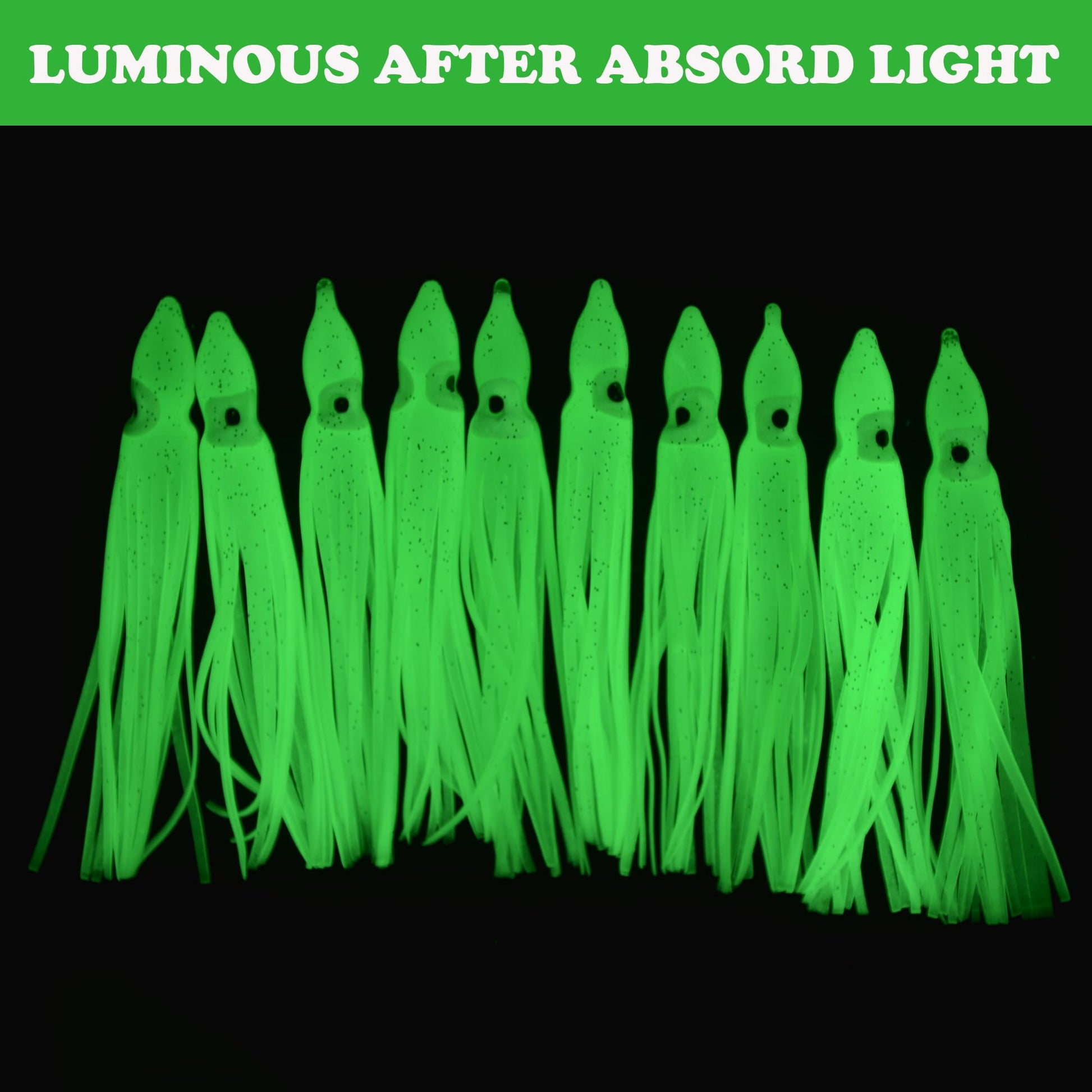 - Attractive Color - Multiple bright color available choose,2 types octopus skirts can glow in the dark,and the thick skirts ensure the hook is hidden and help you land more fish