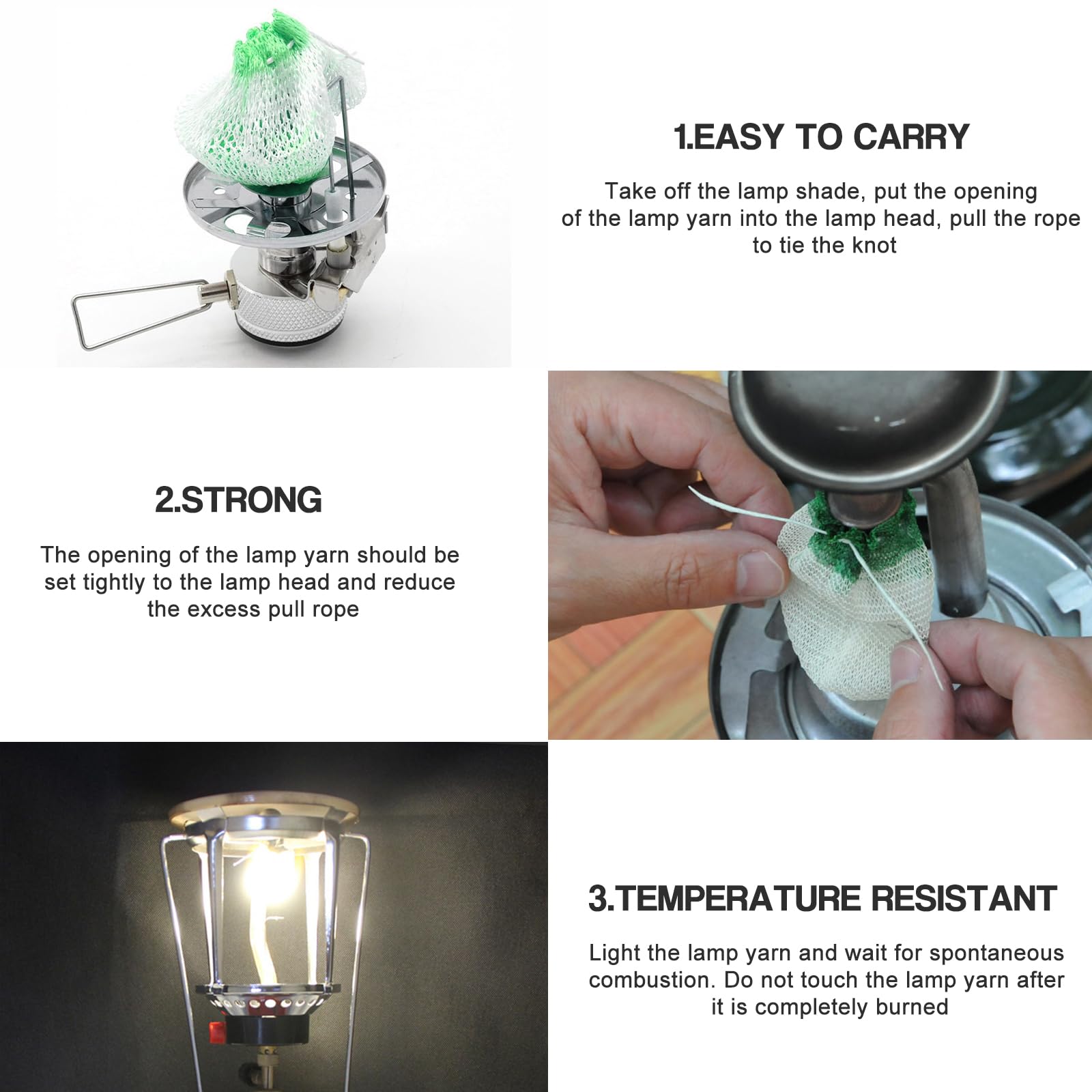 - 【Note】- When using these gas lantern mantles, it is important to securely tie them to the lamp cap without pulling too hard on the drawstring. This will ensure a tight fit and prevent any potential damage to the mantles.