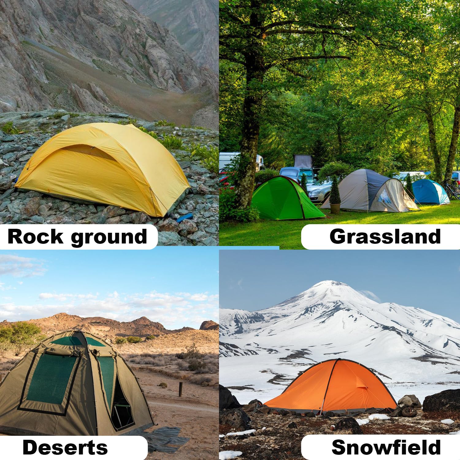 - 【Widely Application】Metal stakes for tent are essential tools for securely tents, canopies, or landscapeare. Our metal tent stakes can withstand strong storm winds in meadows, forests, beaches, snow, deserts, grassland, gobi and other environments.
