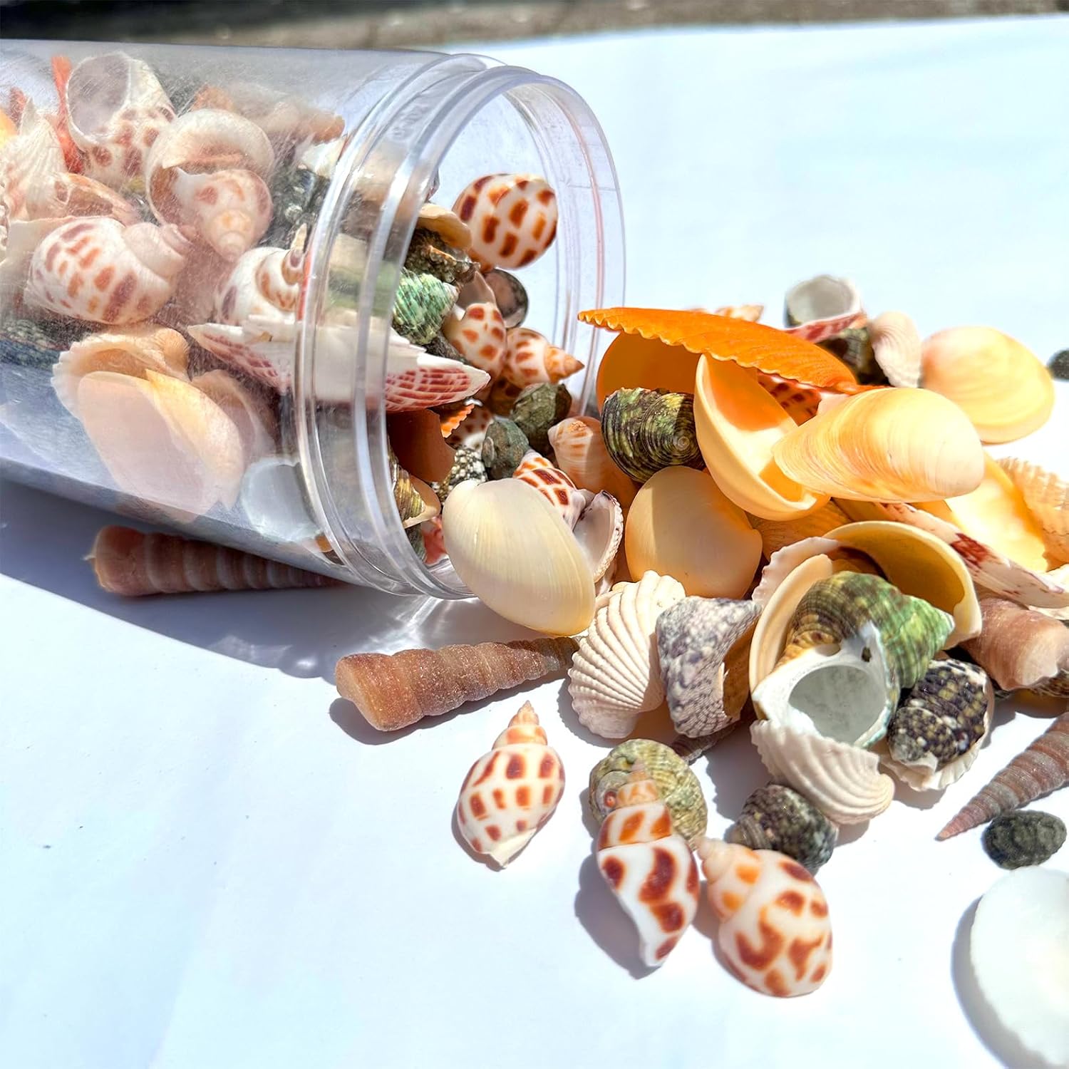 - Package:The bottle size is 5.9"x3.7";more than 210pcs,Put it in a bottle total 628g.The shells and bottles are strong and will not be damaged! Strong packing to ensure good condition on arrival. These seashells was carefully handpicked and cleaned And is a unique blend of colorful and exotic sea shells.