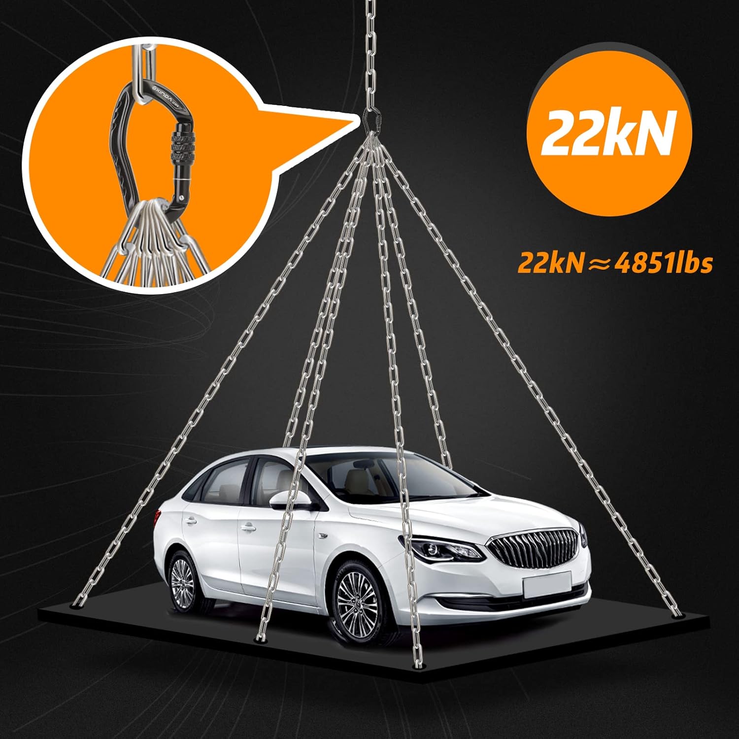 - Heavy Duty Carabiner: Major axis:22KN (4800lbs),Minor axis: 8kN,Open gate: 7kN, CE/UIAA certified.(Tips:The rating on the carabiner is a result based on the lab test,which might vary in practice.)