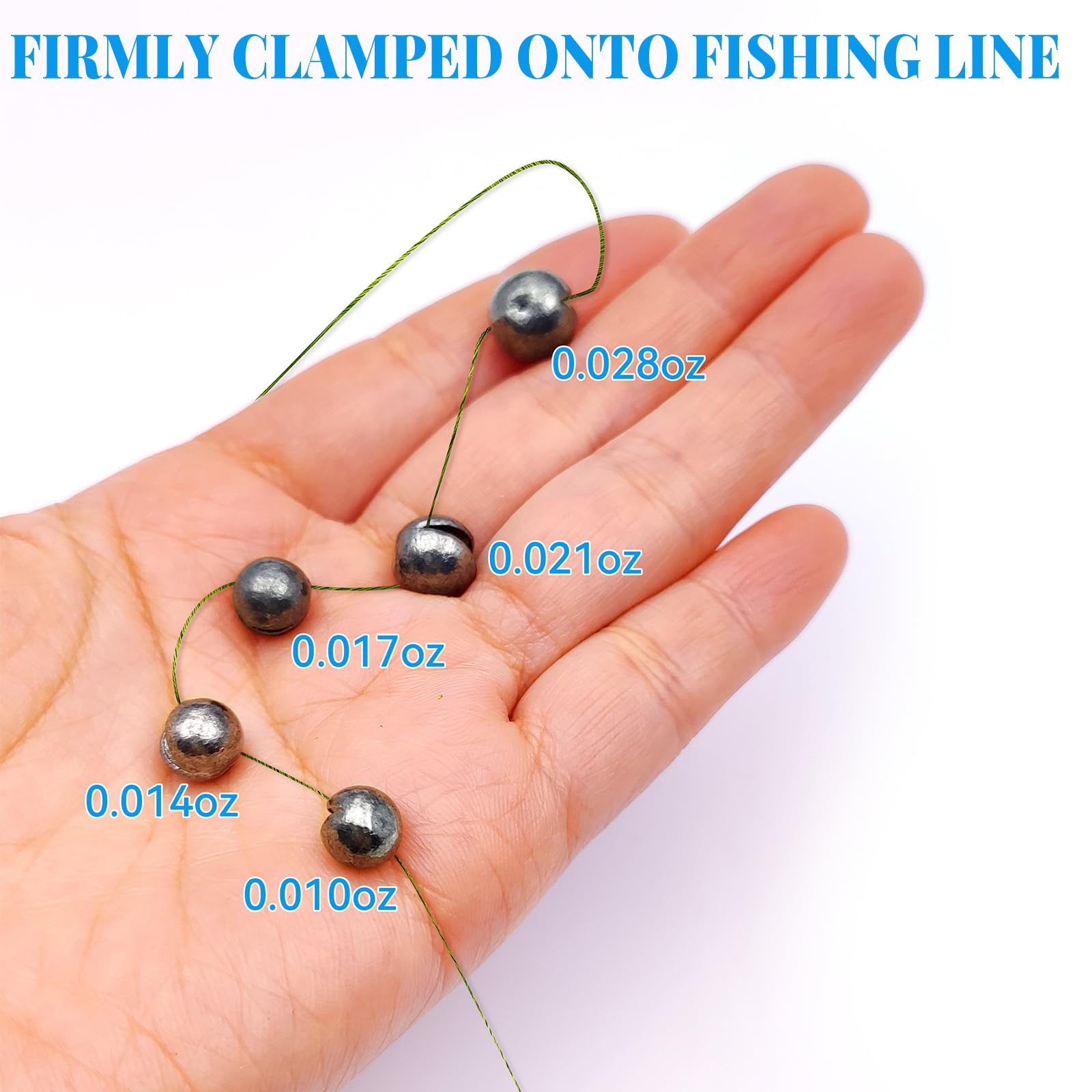 - Dimensions: 230 pieces of fishing weights include 0.3g 65pcs; 0.4g 55pcs;0.5g 45pcs; 0.6g 35pcs; 0.8g 30pcs