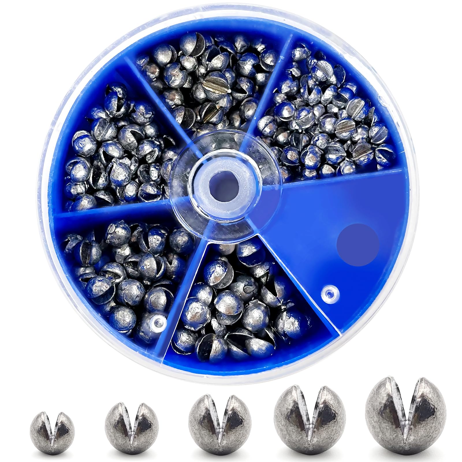 230pcs Fishing Weights Sinkers - Split Shot Fishing Sinkers Kit, 5 Size Round Removable Lead Fishing Weights, 1 Round Box Set Fishing Sinkers for Freshwater Saltwater(Blue Box) (230Pcs)