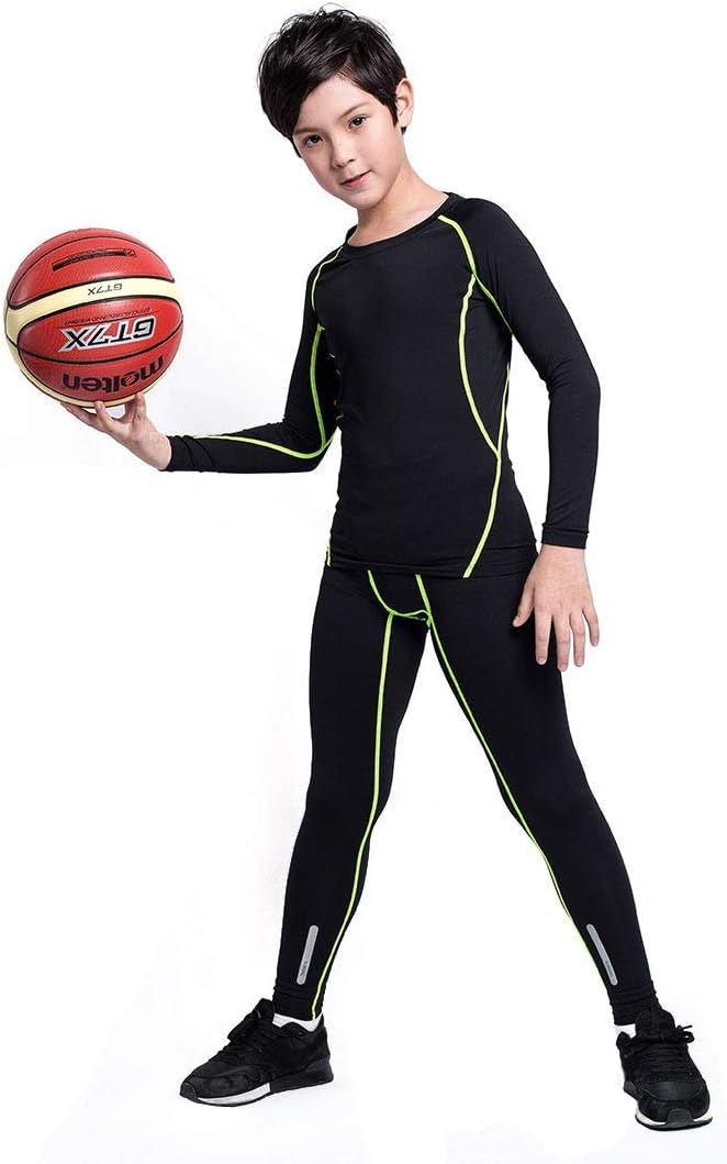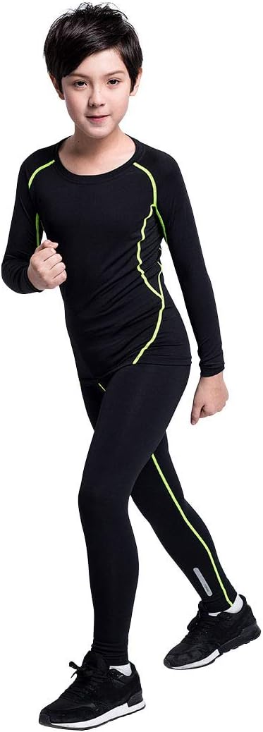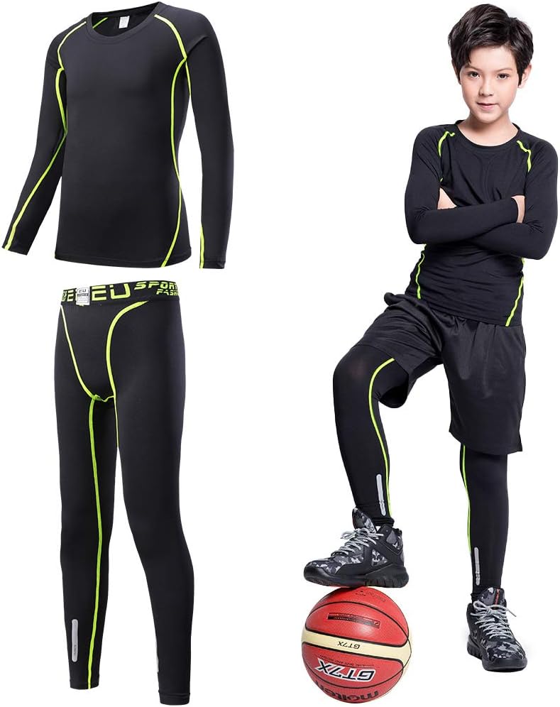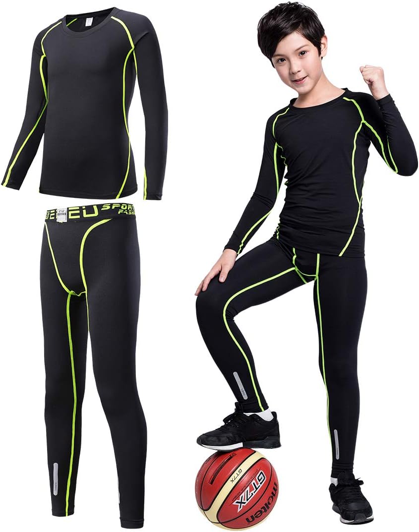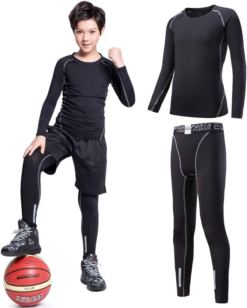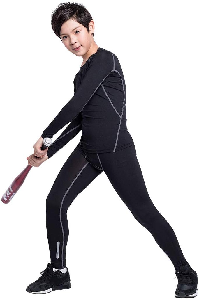 2/3/4 Pcs Boys Girls Base Layer Athletic Compression Leggings and Shirts Thermal Underwear Set Running Pants Tights