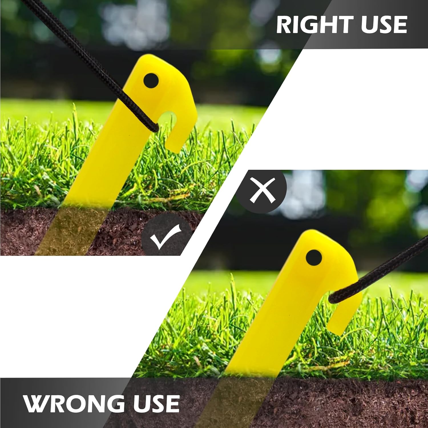 - 【 High quality materials 】: Our plastic tent pegs are made of high-quality PP plastic, which is sturdy, durable, lightweight, and not easy to break or fade. The yellow plastic tent stakes are different from metal materials and will not rust or mold