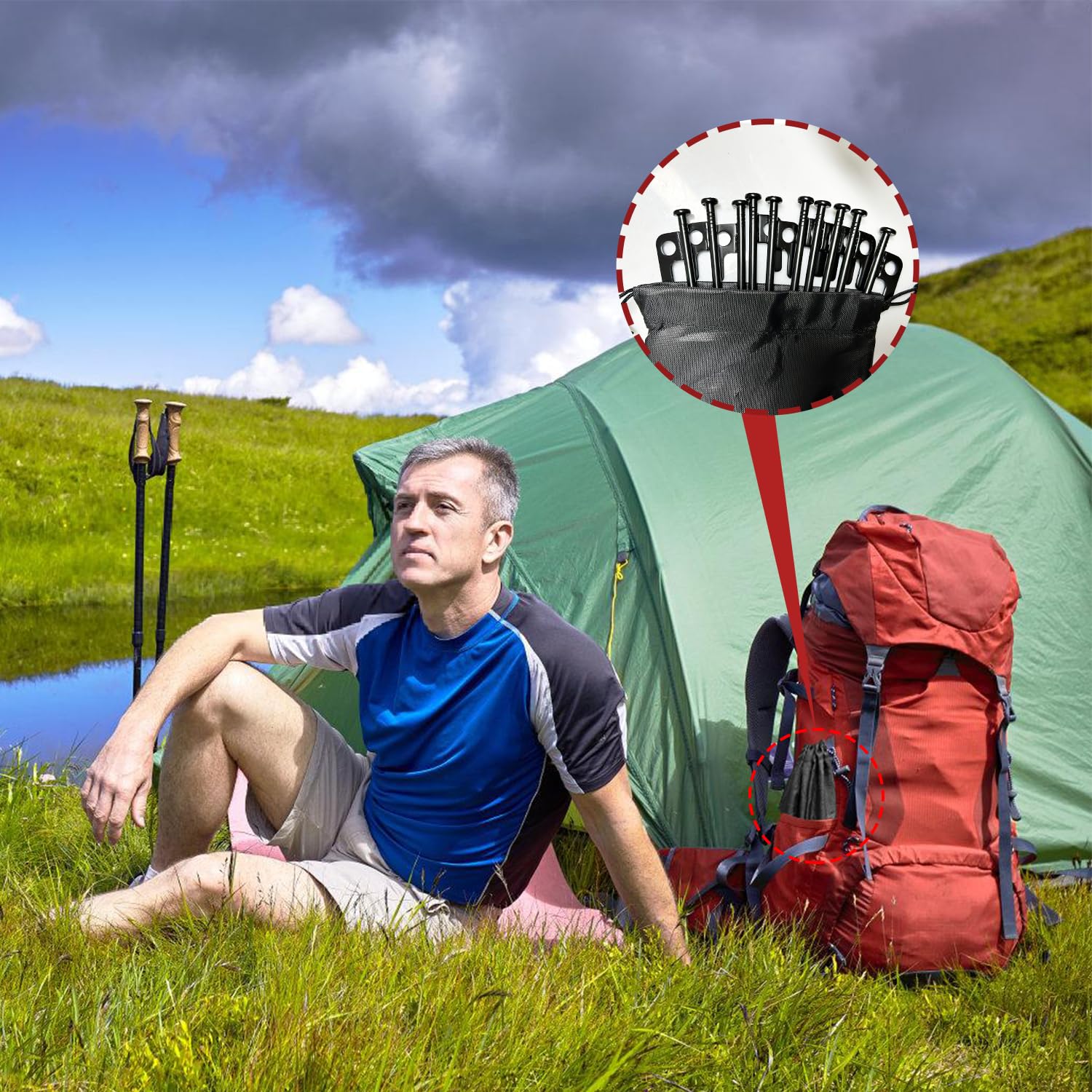 - 【Fluorescent Rings & Storage Pouch 】All camping tent stakes come with fluorescent rubber rings to provide more visibility in dark environments. The storage pouch is made of 480D Oxford cloth, durable and not easy to wear