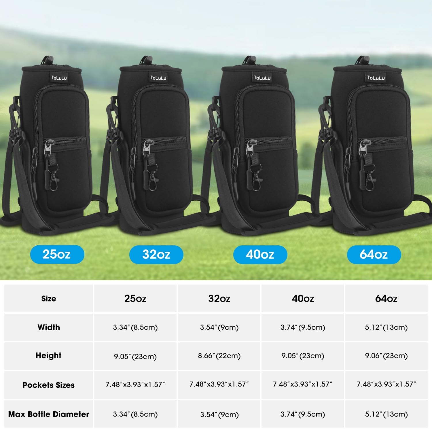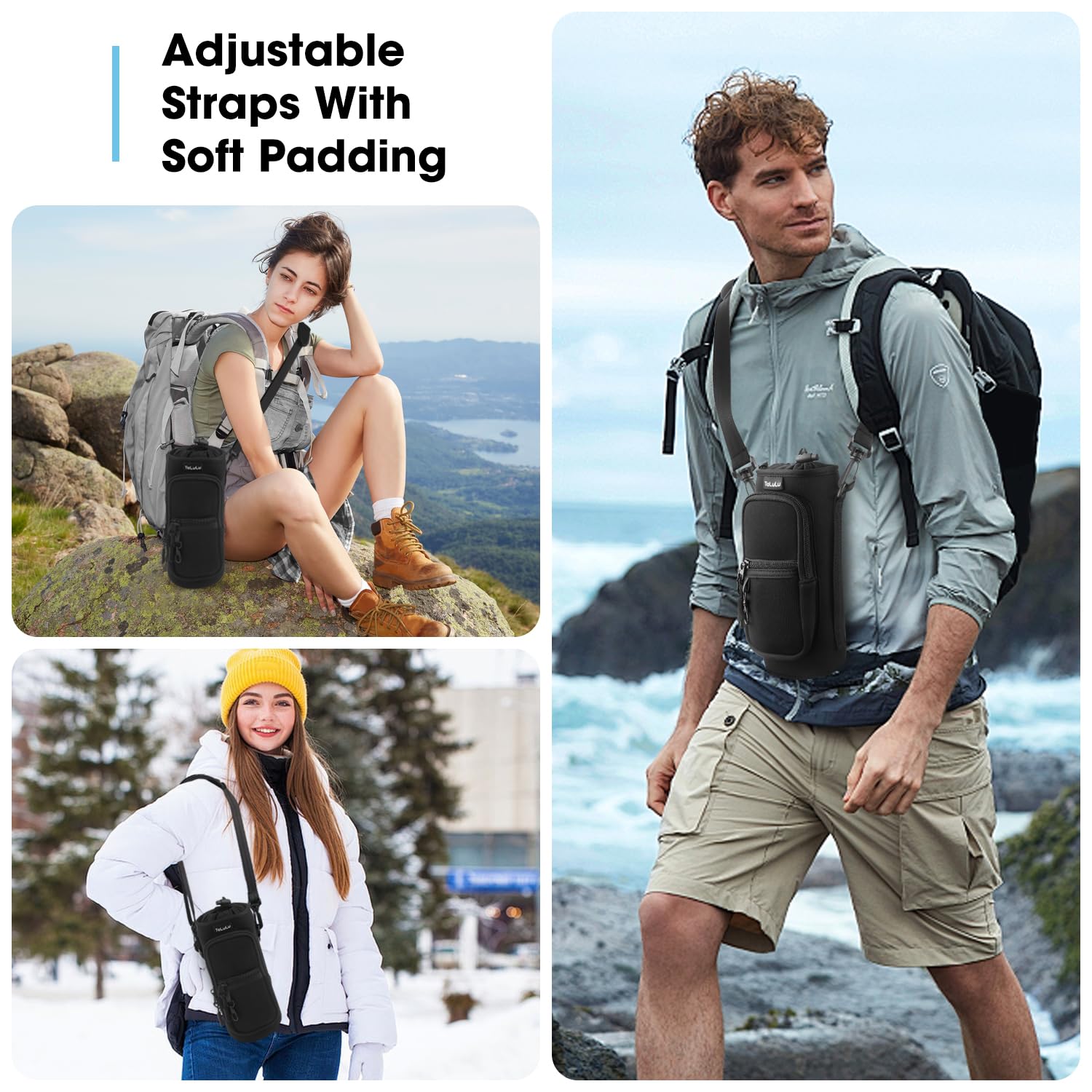25/32/40oz Water Bottle Carrier Bag with Phone Pocket,Crossbody Insulated Neoprene Adjustable Shoulder Strap Water Bottle Pouch Case, Water Bottle Holder Sling Sleeve for Walking Hiking, 40oz Black