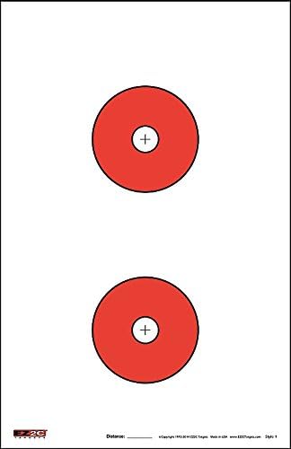 Features two 4" EZ2C Red circles each with a 1" center bullseye. This style is perfect for 22 caliber fun all day long. Targets are on 11" x 17" High-Quality Bright White Paper. They are Conveniently Packaged with 25 Targets per Pad.