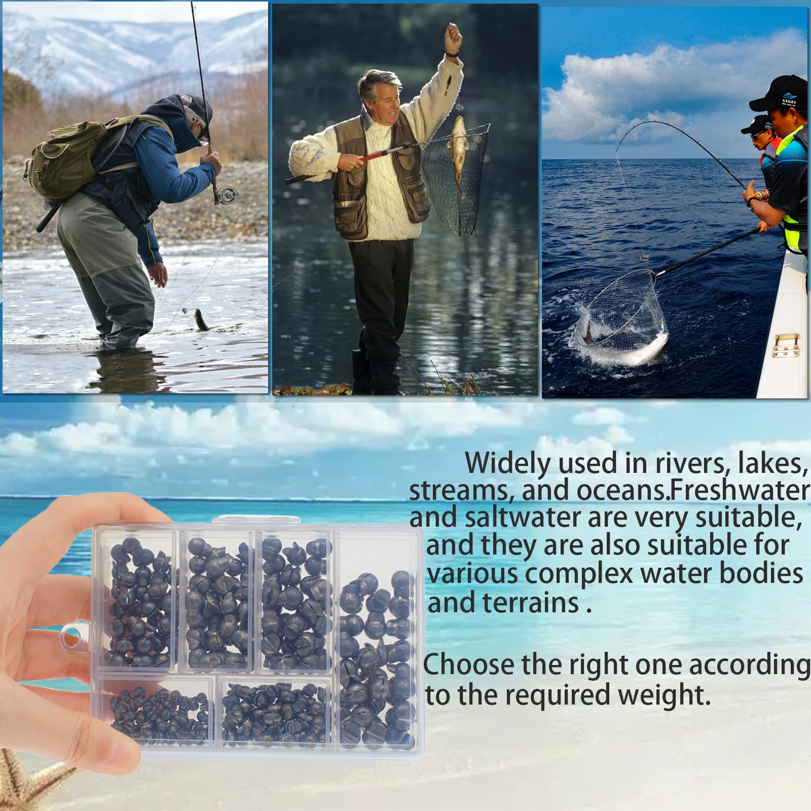 250Pcs Split Shot Fishing Weights Sinkers, Round Assortment Fishing Weight Clip on Sinker Weight Freshwater Saltwater Fishing Gift for Fishing Lovers