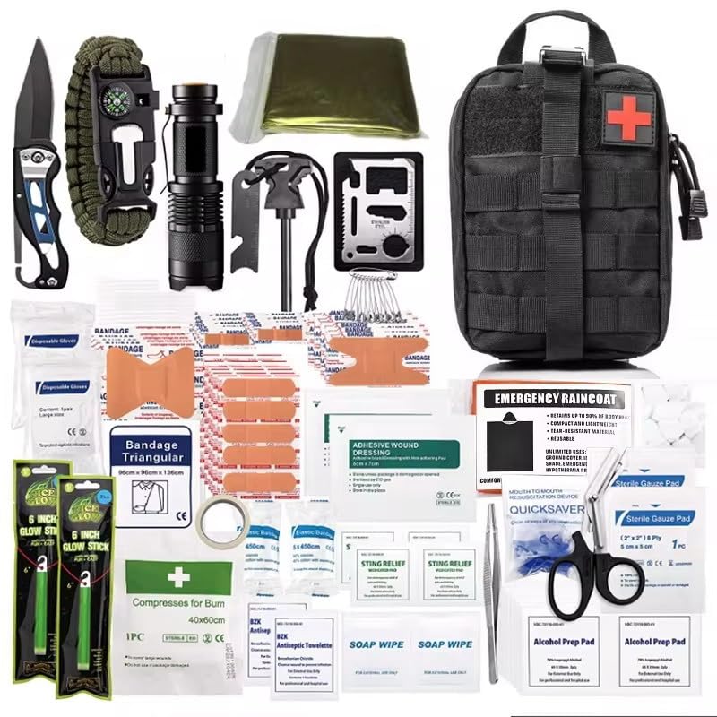 278-Piece Survival Kit & First Aid Kit - Emergency Medical Supplies for Camping, Hunting, Hiking, Urban EDC & Disaster Preparedness in Tactical Molle Pouch