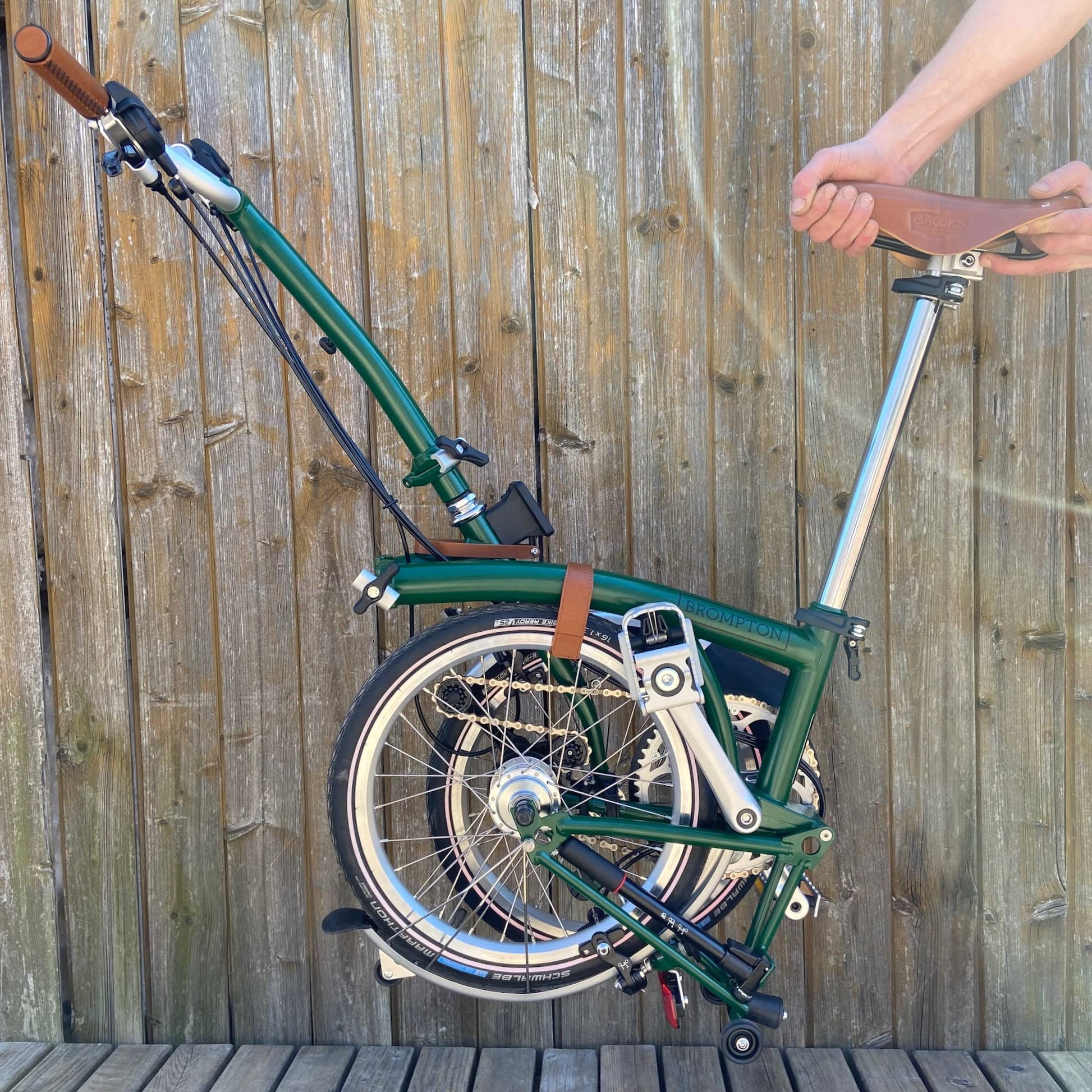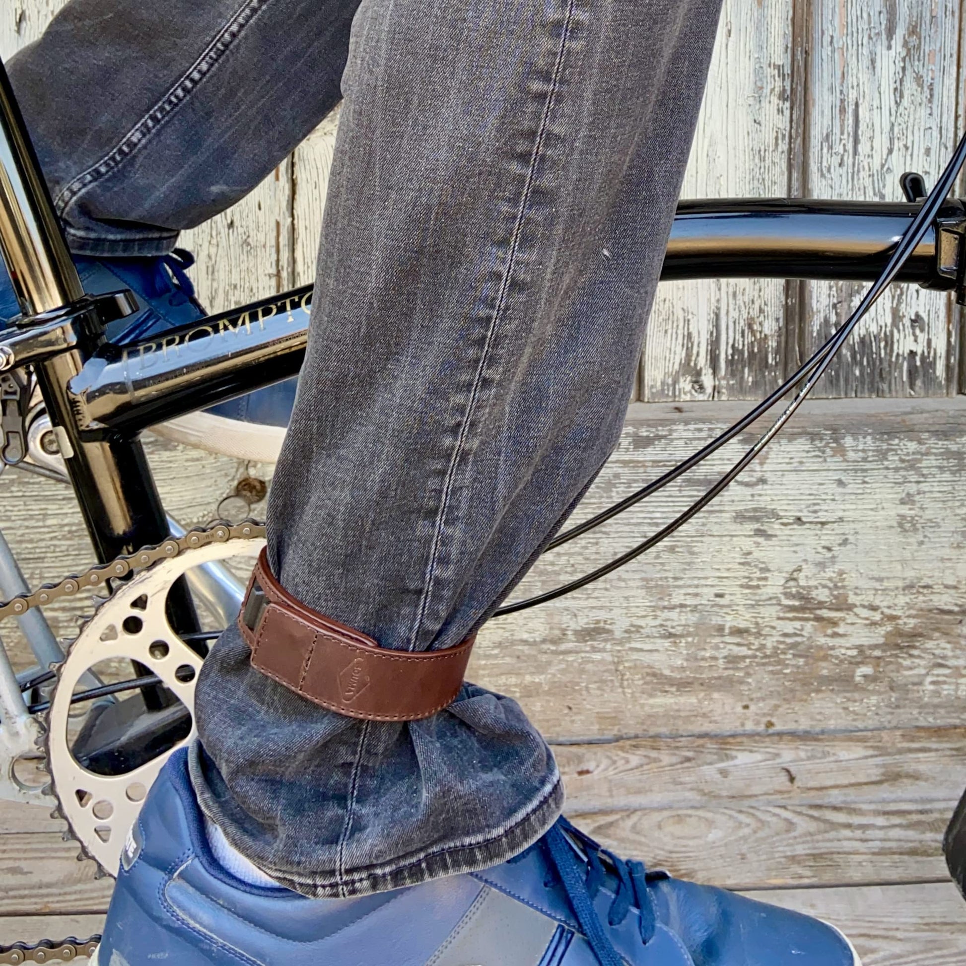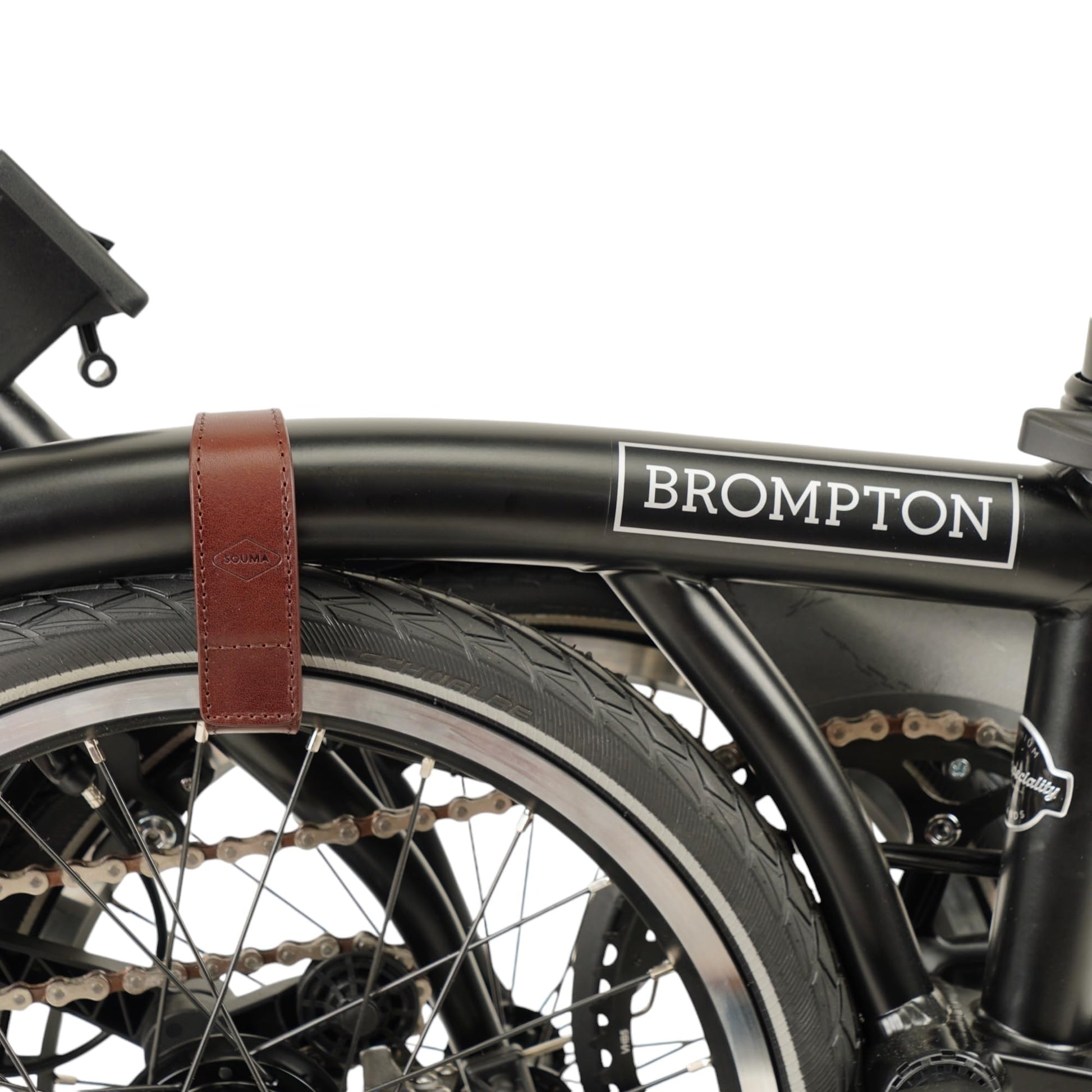 2in1 Leather wheel frame strap for BROMPTON BICYCLE and trousers strap in one - leather bicycle accessory (Brown)