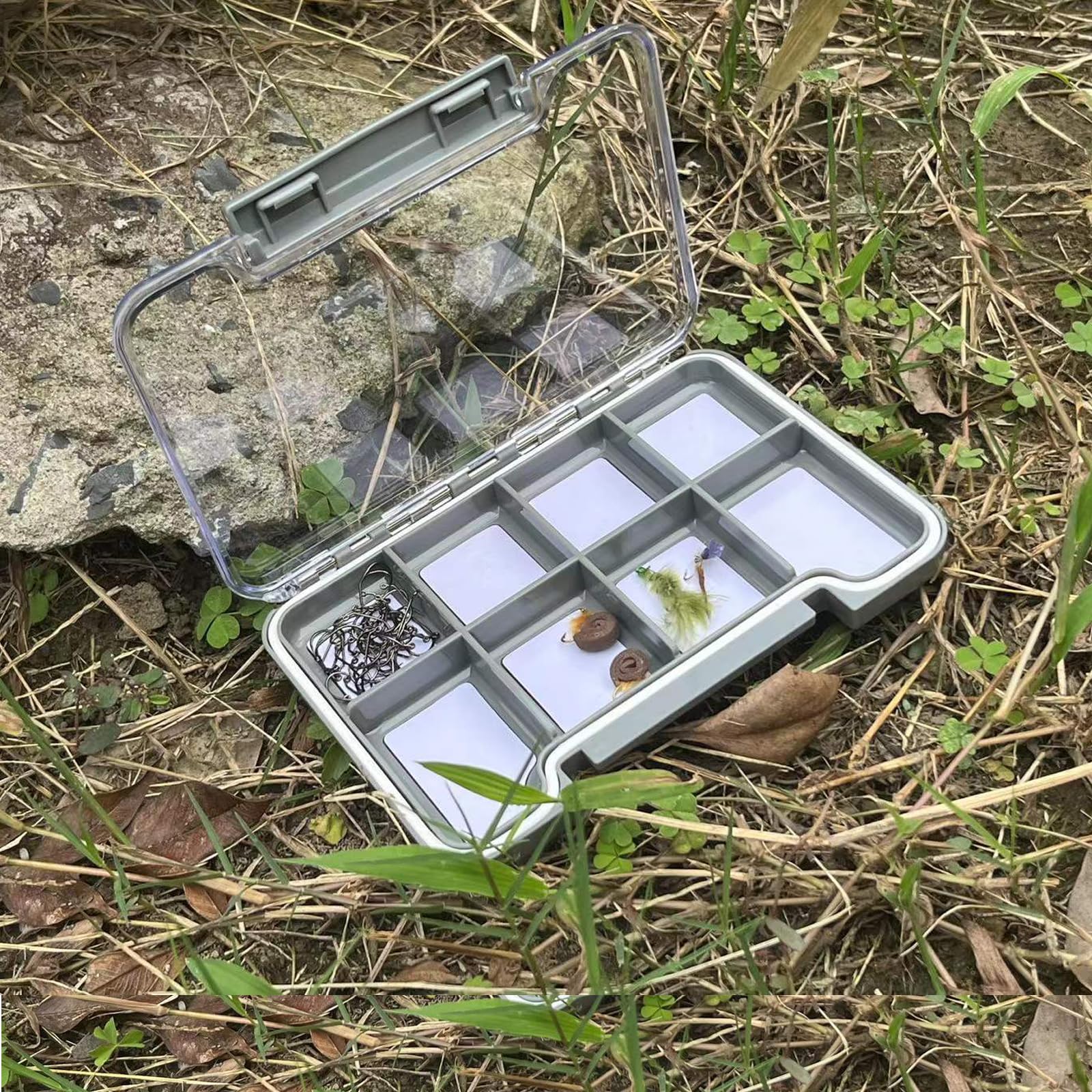 2PACK-Aventik Waterproof Slim Pocket Fly Box Fishing Hook Box Bait Storage Tackle(Small, 8 Magnetic Compartment)