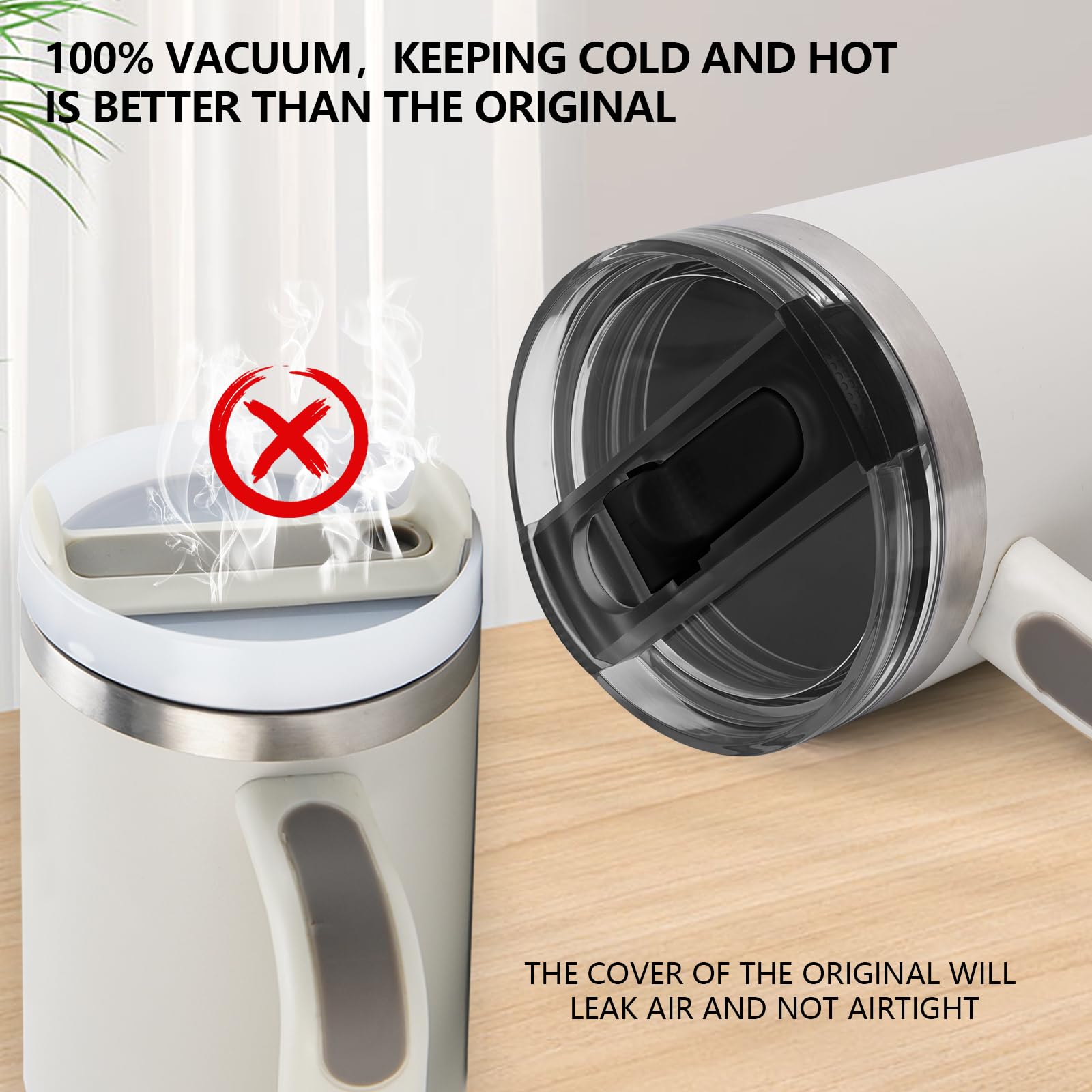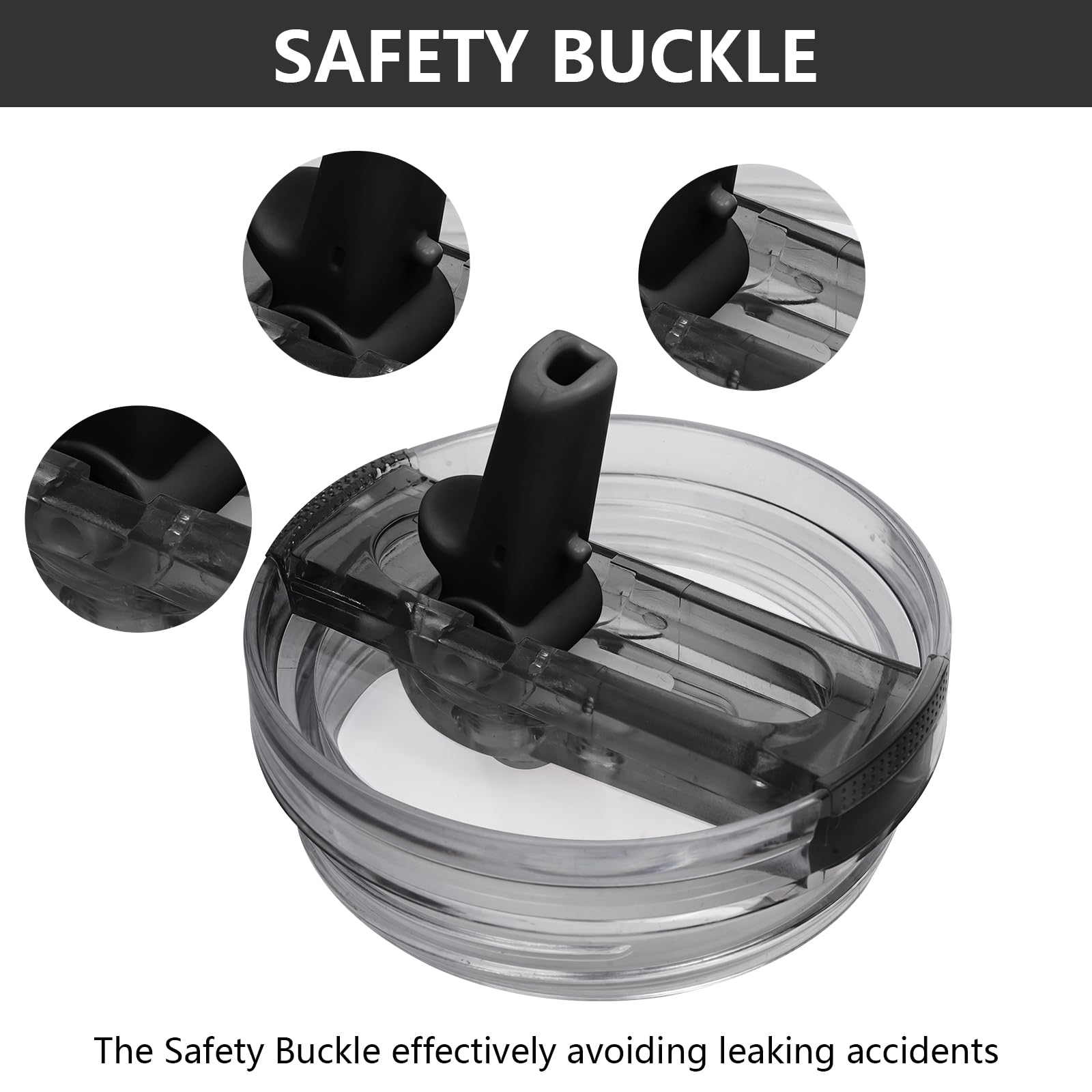 2PC Replacement Leak Proof Tumbler FLIP Lid With Straw - Fit For Stanley ProTour Quencher and Quencher H2.0 40oz,64oz Tumbler (2Black, 40oz and 64oz)