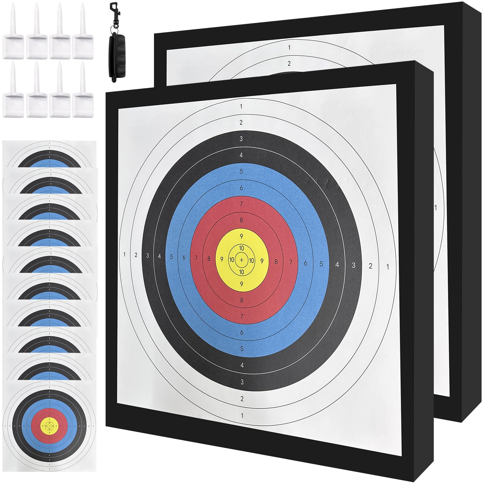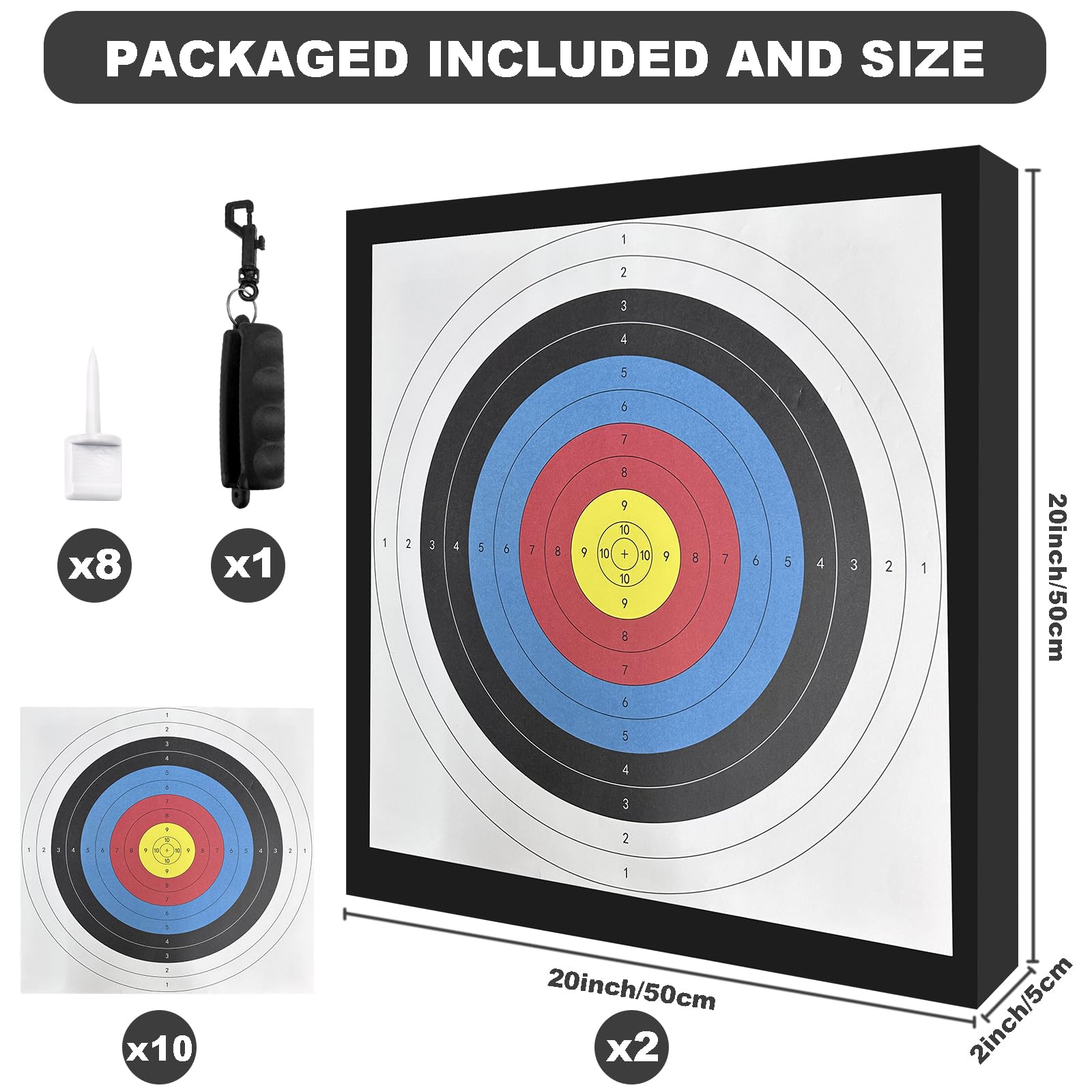 2Pcs 20'' Foam Archery Target, High-Density EVA Archery Targets for Backyard, Archery Target Block with 10pcs Targets Paper, 8pcs Target Pins, Arrow Puller (Foam Target)