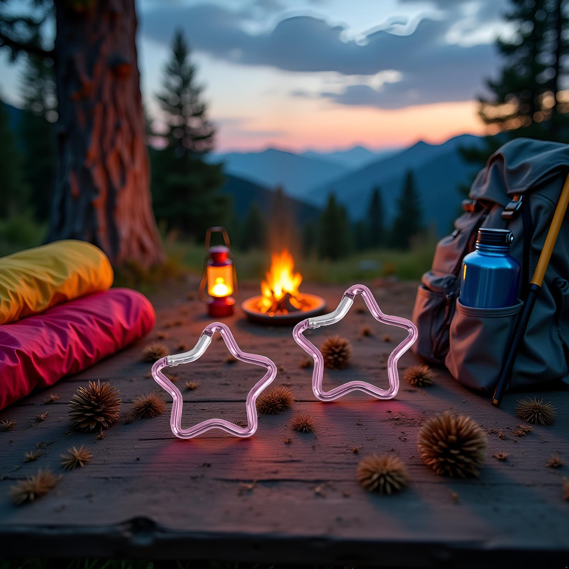 Details: Elevate your outdoor adventures with these star-shaped carabiner clips, crafted from durable aluminum alloy. This 2-pack of heavy-duty clips serves as reliable companions for camping, hiking, fishing, and traveling. The distinctive star design adds a touch of style while maintaining robust functionality as key chain hooks or gear attachments. These versatile carabiners are lightweight yet strong, making them perfect for securing equipment, attaching accessories, or organizing keys. Whether you're scaling mountains or managing everyday carry items, these aluminum clips offer convenient, reliable performance. The practical design allows for quick attachment and release, while the solid construction ensures lasting durability. Keep your gear organized and accessible with these multipurpose outdoor accessories that blend form and function.
