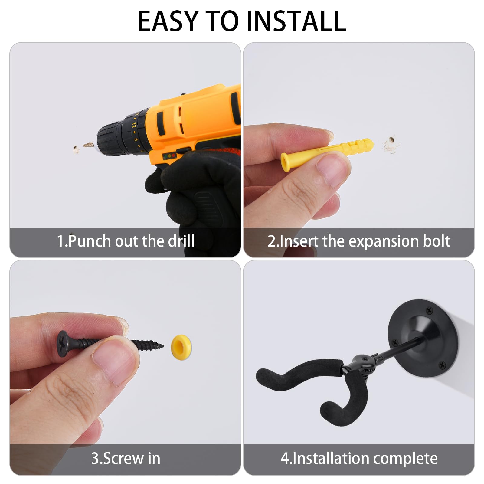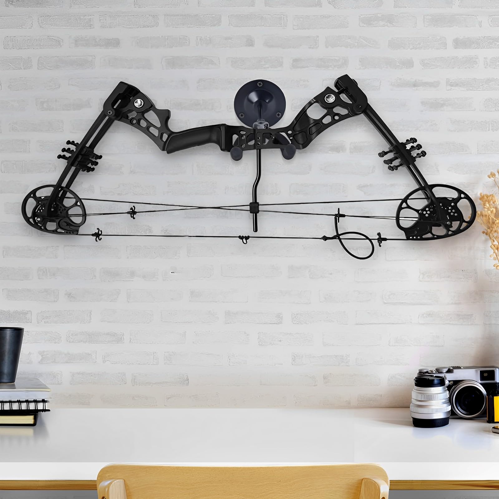 - Easy installation: Simply align the base with the required installation position on the wall, drill holes, insert expansion screws, and screw them in to secure the bow rack to the wall. An adjustable pivot in the middle ensures the bow rack is positioned exactly where you want it to be.