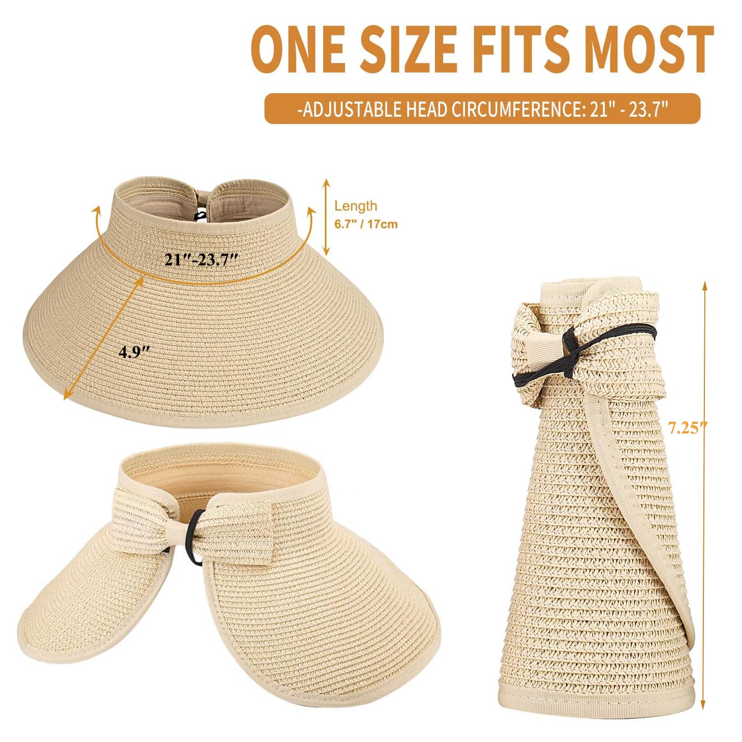 - 【SHOP WITH CONFIDENCE】: If you are not satisfied with your straw sun visor hat within 12 months, we'd like to offer you a replacement No Waiting, Just purchase your Hat.