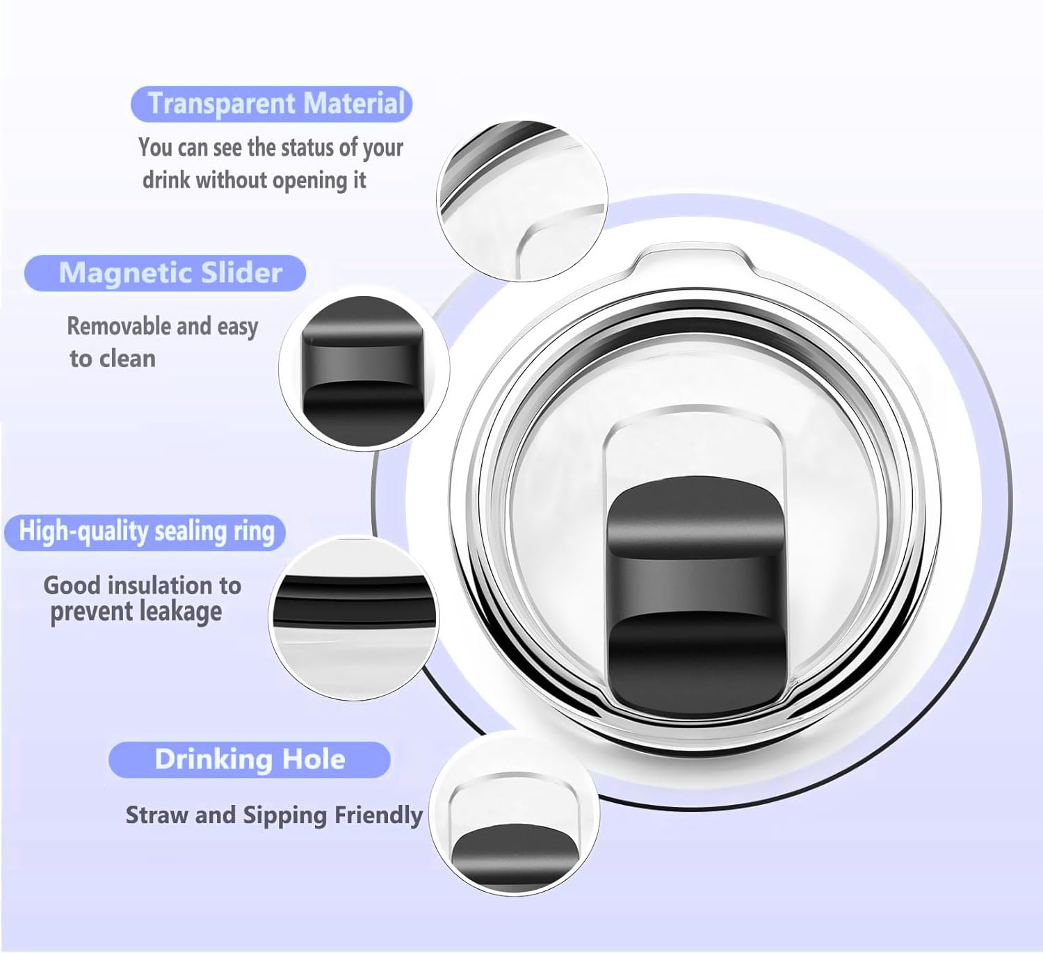 - 【Keeping Cold or Hot】30 oz Tumbler Lid for YETI Magnetic Slider Replacement LidsAnti overflow design, magnetic slider and black silicone O-ring form a tight seal on the cup, effectively preventing liquid overflow. Keep the beverage warm/cold for a long time.