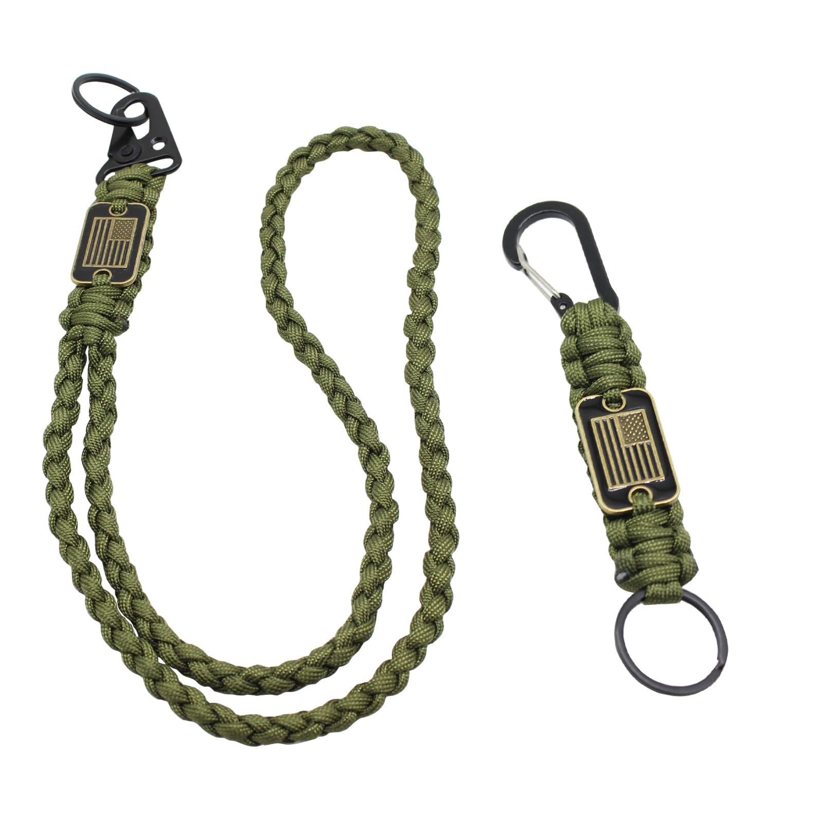 - You will get 1Pcs of long heavy duty paracord lanyards and 1Pcs of short paracord keychains. In same colors,3 different colors to choose. While ensuring high quality and having enough quantity to meet your different use and replacement, you can also share with your family, friends. These neck landyard/keychain with USA Flag, beautiful and practical, Perfect for pairing with various outdoor activities.