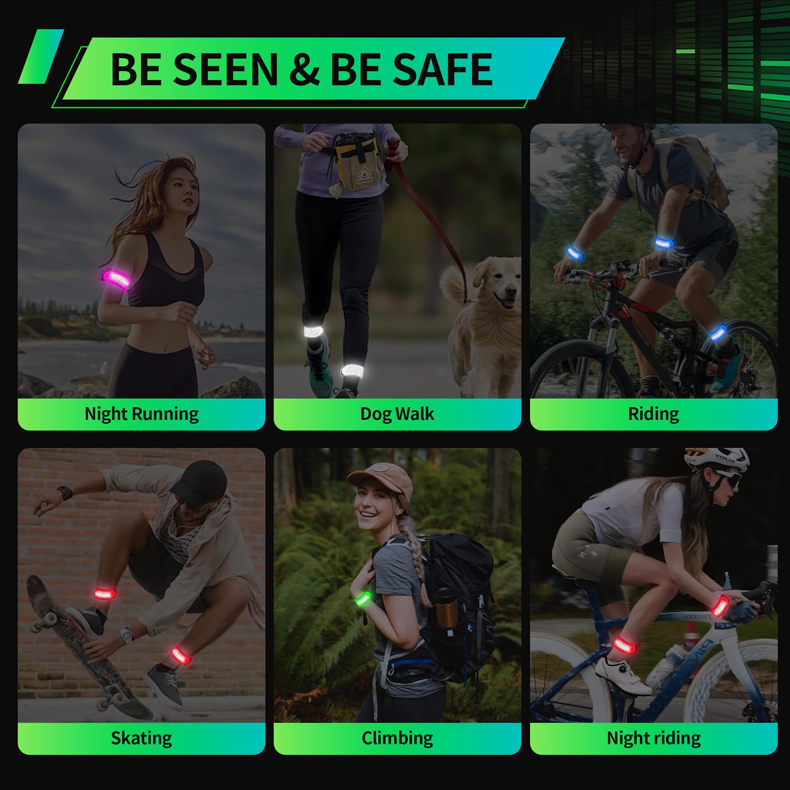 - 【5 Light Colors & 3 Light Modes】BIGHAKI LED reflective armband for runners features 5 light colors, including White, Green, Blue, Pink and Red. Additionally, you can choose between 3 dynamic light modes - Steady On, Flash and RGB Cycle Mode, meeting your personalized needs for safety and style.