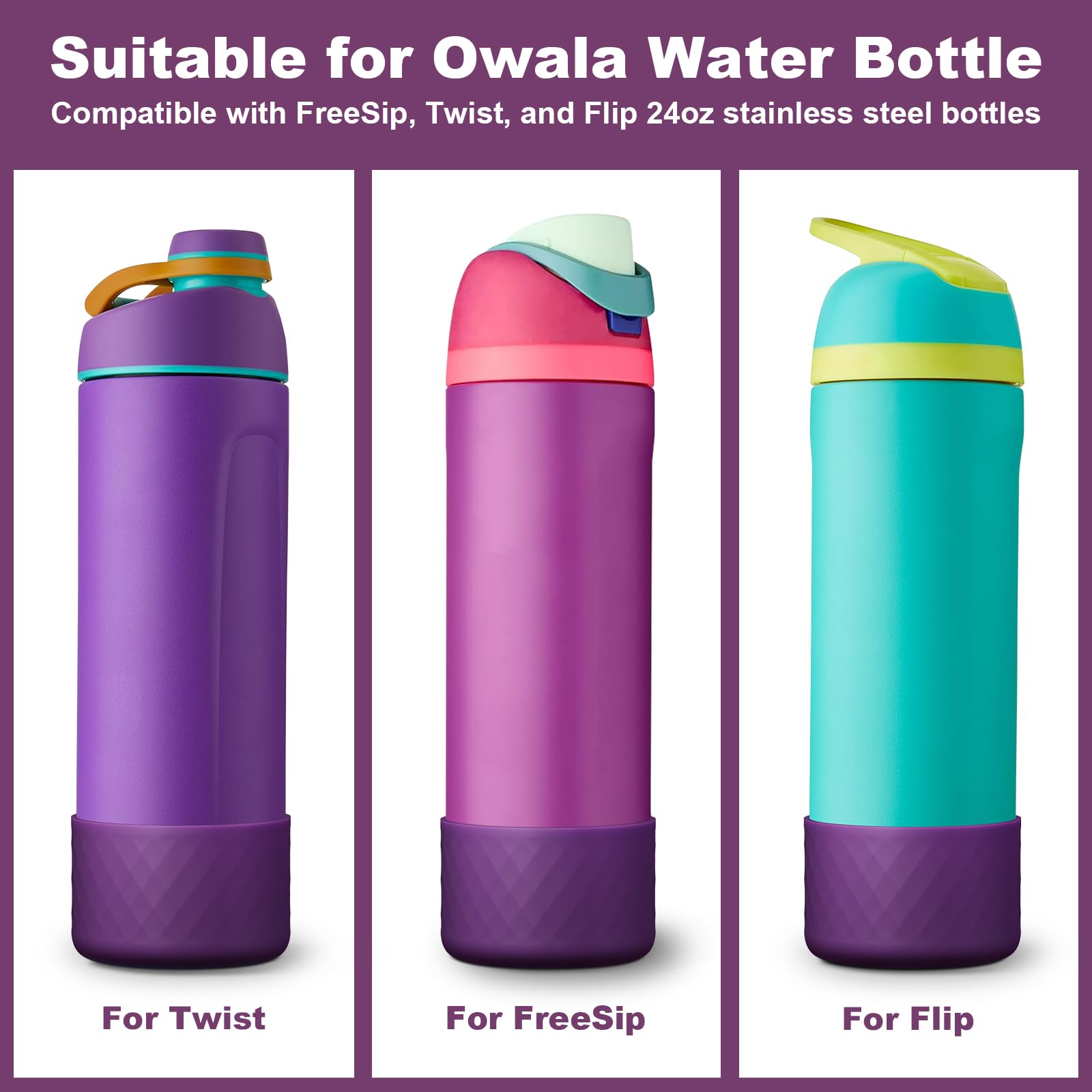 - Perfect Fit -- Our Silicone boot is designed to fit perfectly for Owala FreeSip, Twist, and Flip stainless steel water bottles. It's precisely made to fit the cup bottom and won't fall off easily.