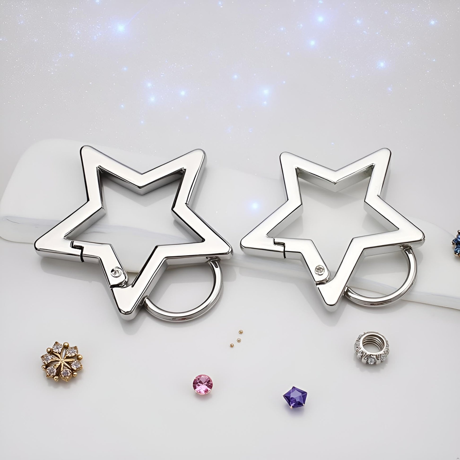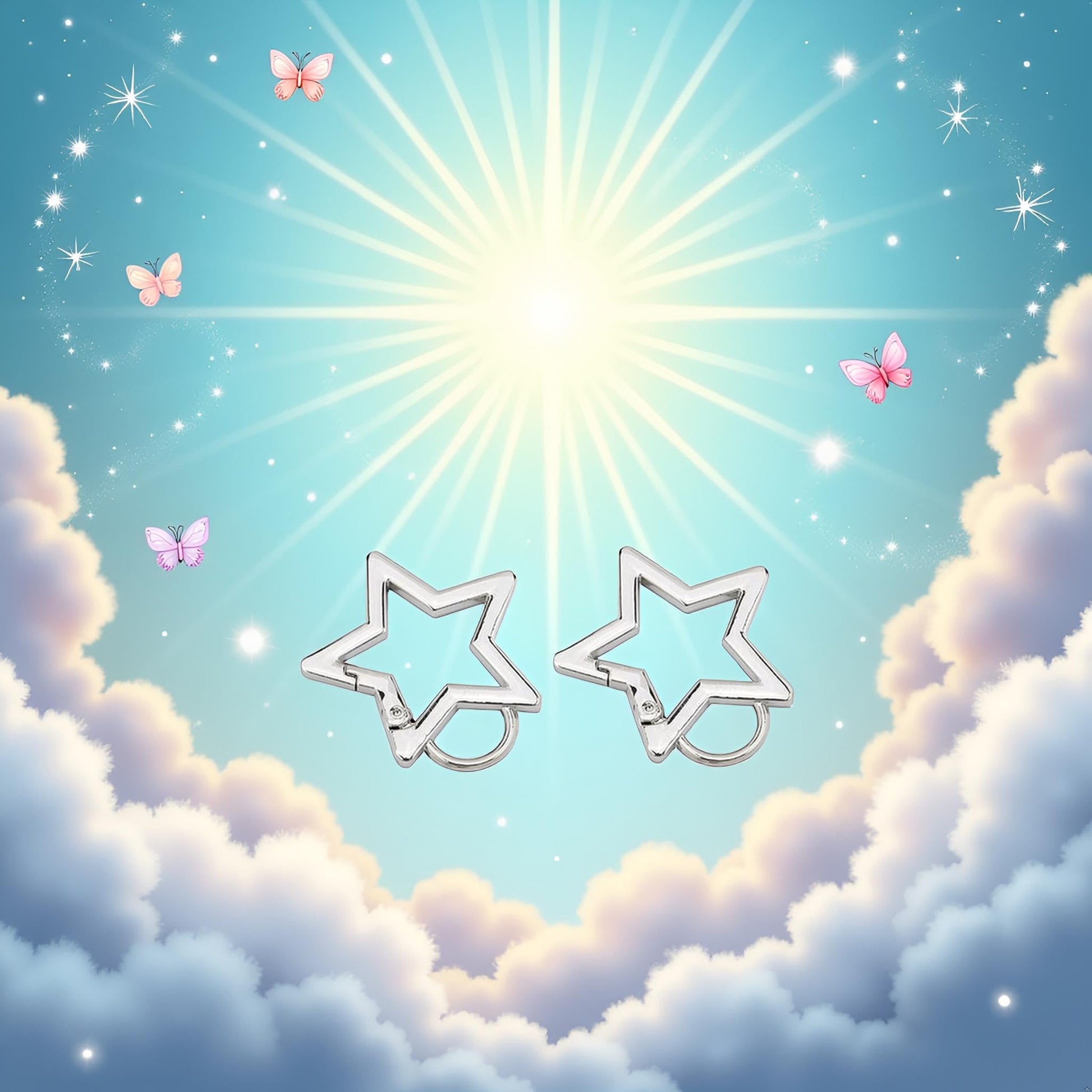 2Pcs Silver Star Shaped Stainless Steel Keychain Clip Carabiner Snap Hook Holder Star Hook Clip Key Holder Carabiner Clip for Keys Chain Accessories