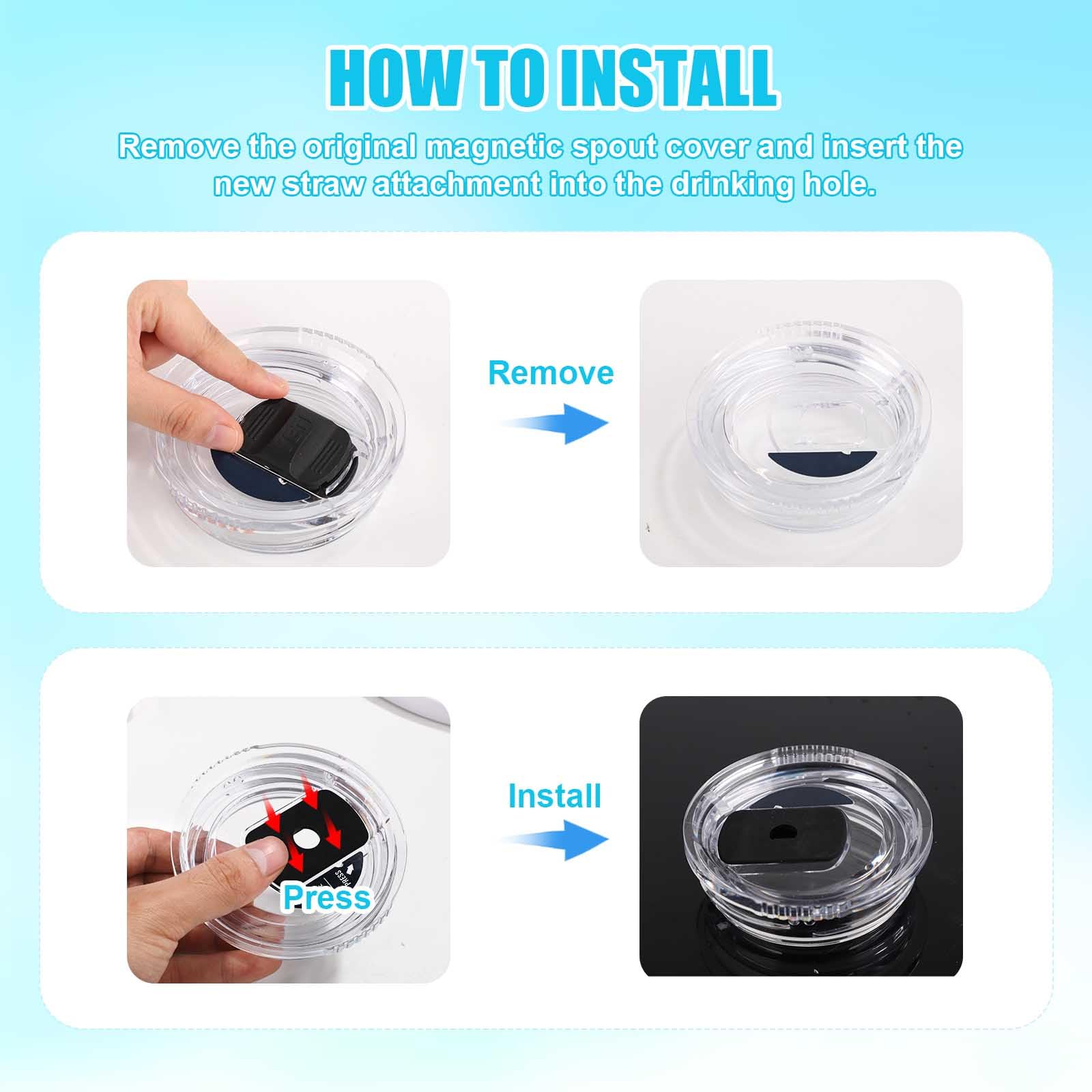 - Easy to Install: Our products can be installed without too many complicated procedures. You only need to remove the original magnetic cover and insert the new straw accessory into the drinking hole. It will not fall off easily after installation.