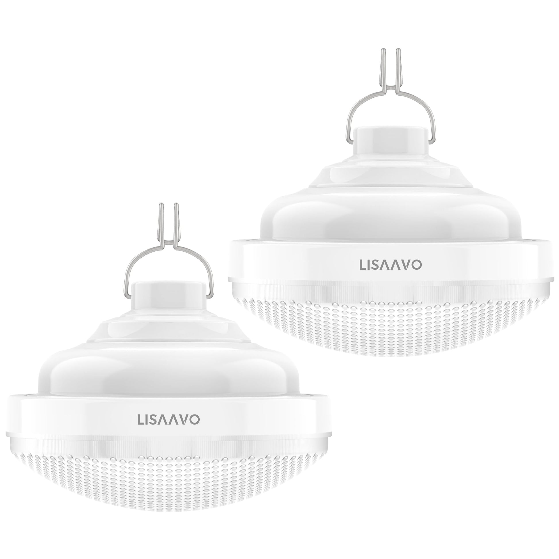 - This 2-pack of rechargeable Tent lights is designed with a hanging hook on the back allowing you to use it as a camping lantern or emergencies to illuminate your space.Uses a modern and compact design to elevate the look of any space.