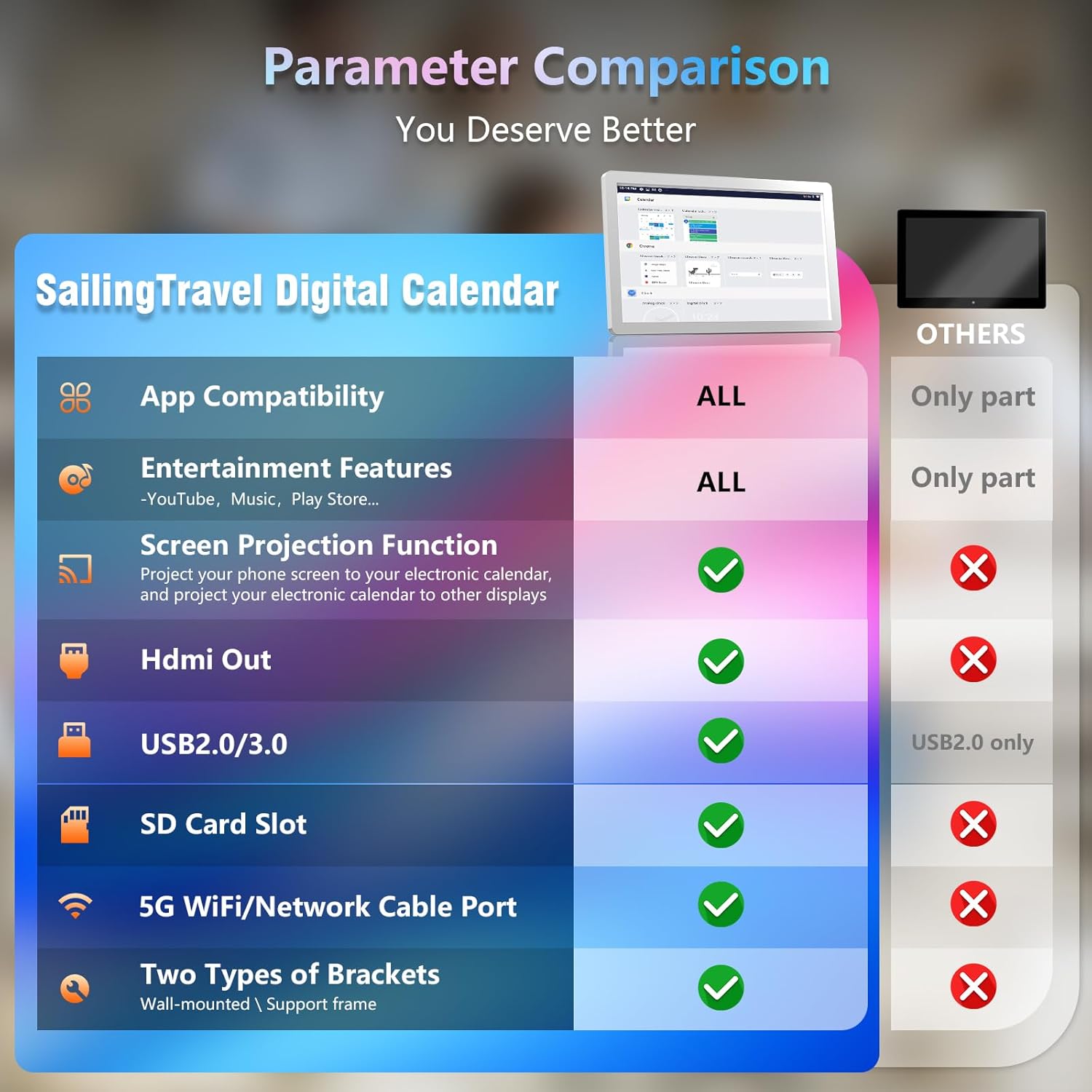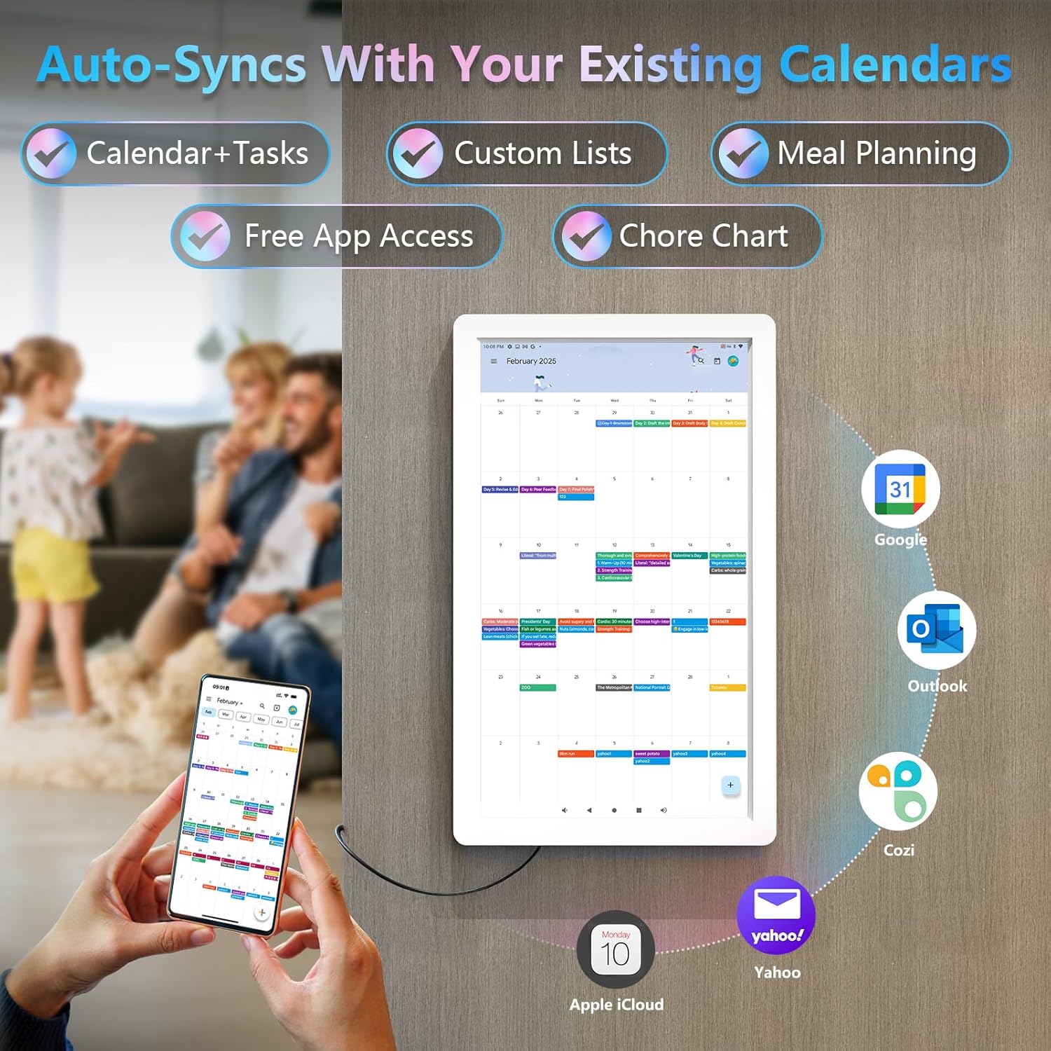 - 【Second Generation Family Calendar】15.6-inch high color gamut touch screen, free version, digital calendar and chore sheet for busy families, simplify your family schedule, assign unique colors and tasks to each family member, centrally manage appointments, tasks, school activities and shared reminders for the family, and easily synchronize with Google Calendar, iCloud, Outlook, Yahoo, etc.