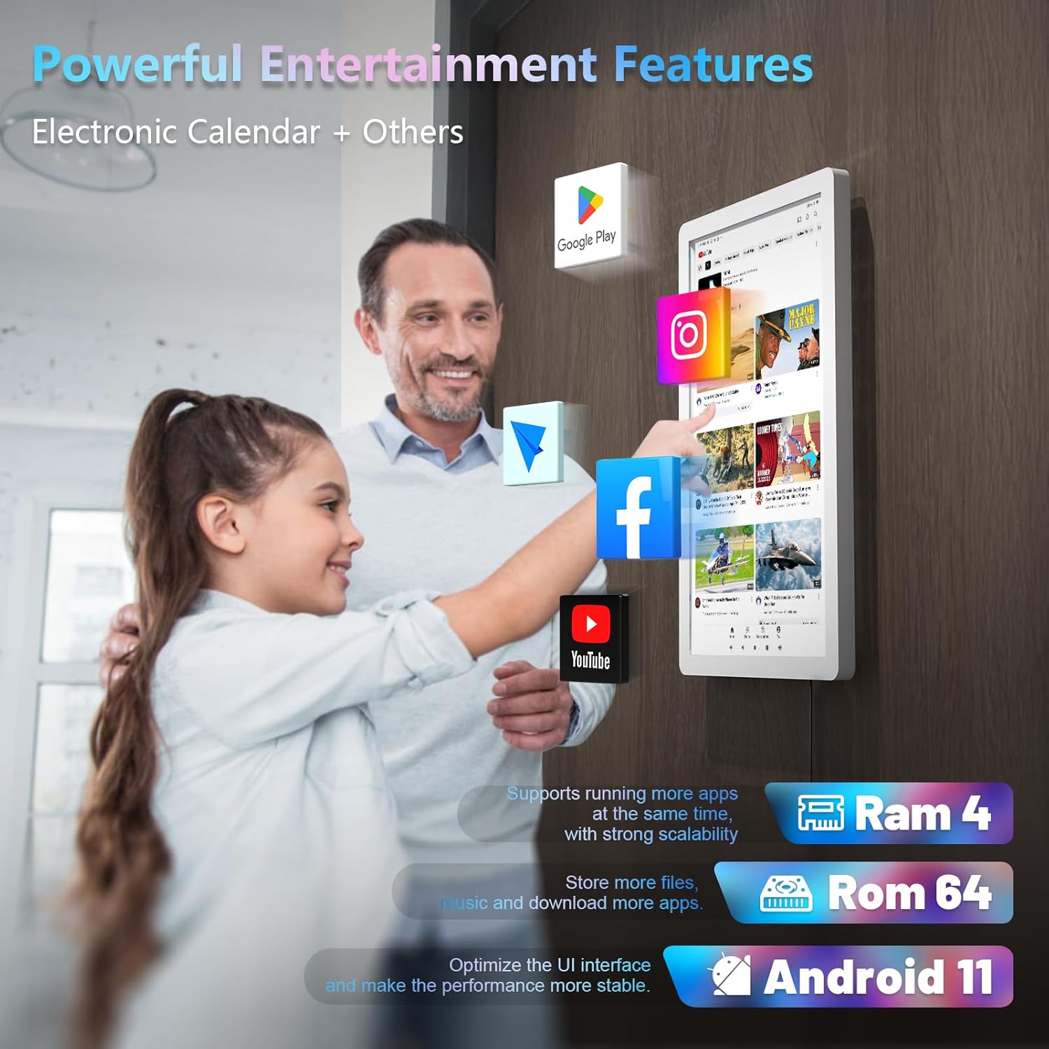 - 【Powerful, Different from Others】Android 11, (4Ram+64Rom) 4ram supports not only calendar software running, but also more APPs (Youtube, Weather, Music, Video, Google Photos, Gmail, Play Store...), 64G storage function can download more entertainment software.