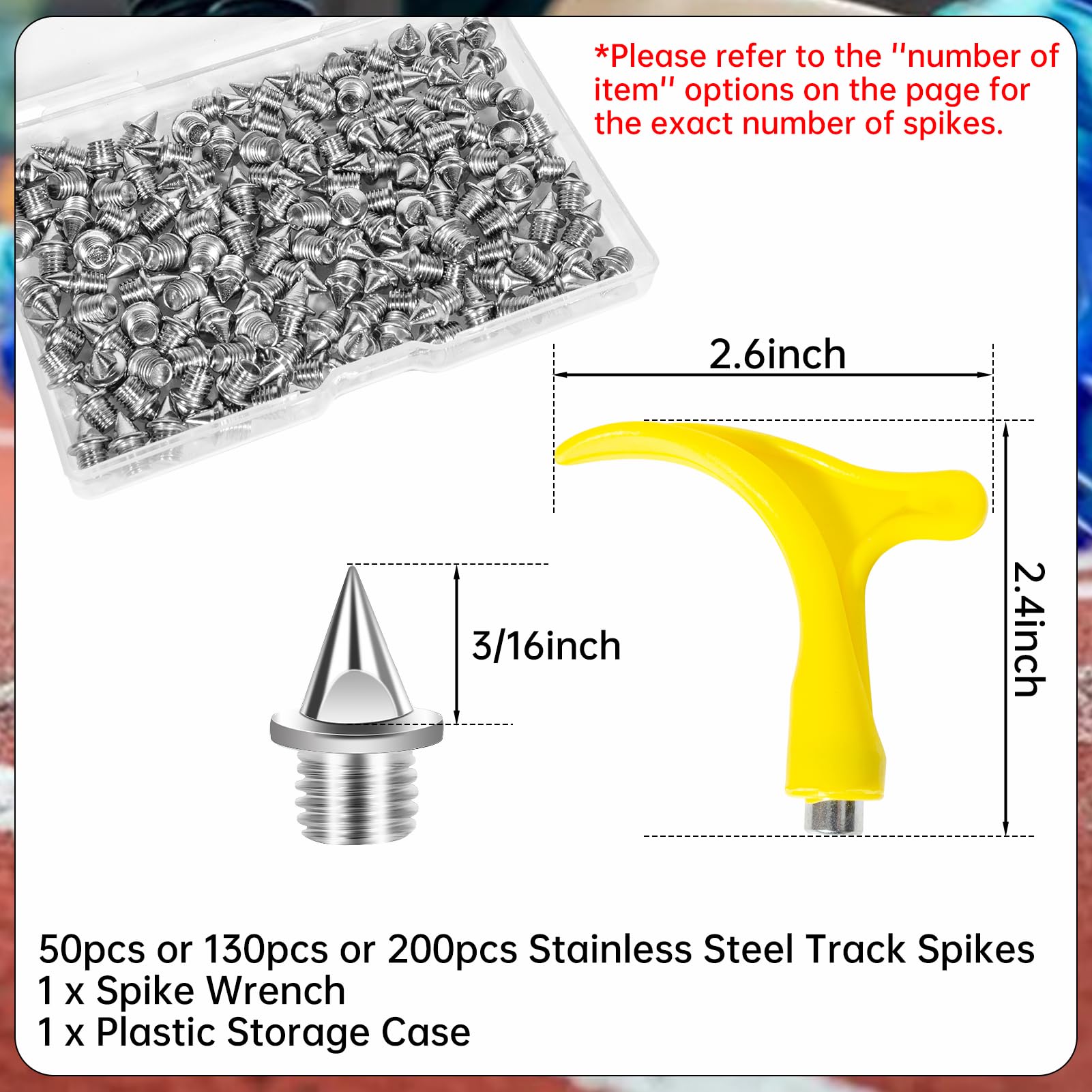 - Package and size: You will receive 130pcs 3/16" spikes with 1 piece spike wrench and 1 piece storage box, benefit for you to replace your shoe spikes. Enough to meet your daily needs