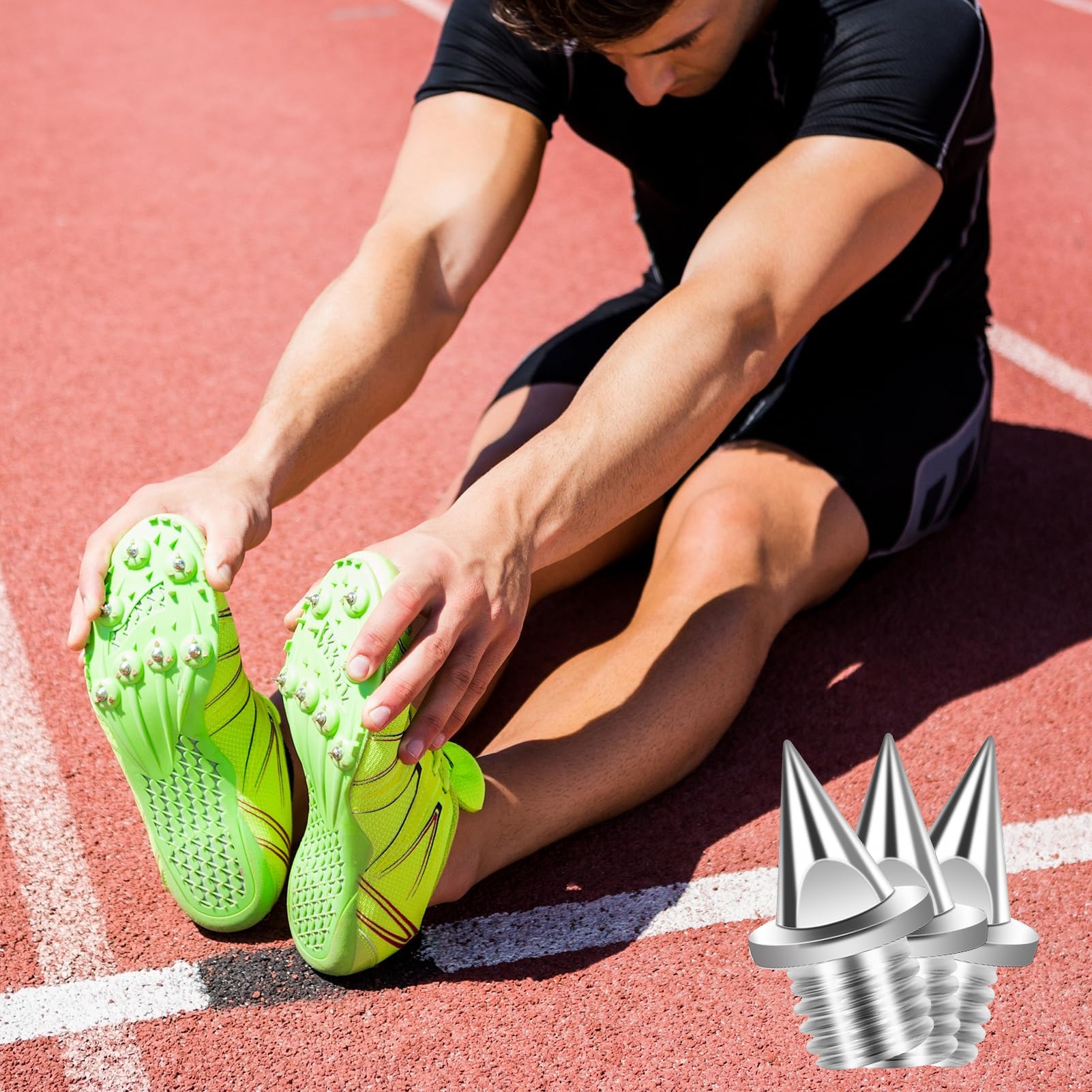 - Premium spikes for track shoes: 3/16 inch track spikes made of premium stainless steel, which is sturdy and durable, rust-resist and corrosion resistant. Pyramid needle design improves your running balance of traction and helps you achieve better grades