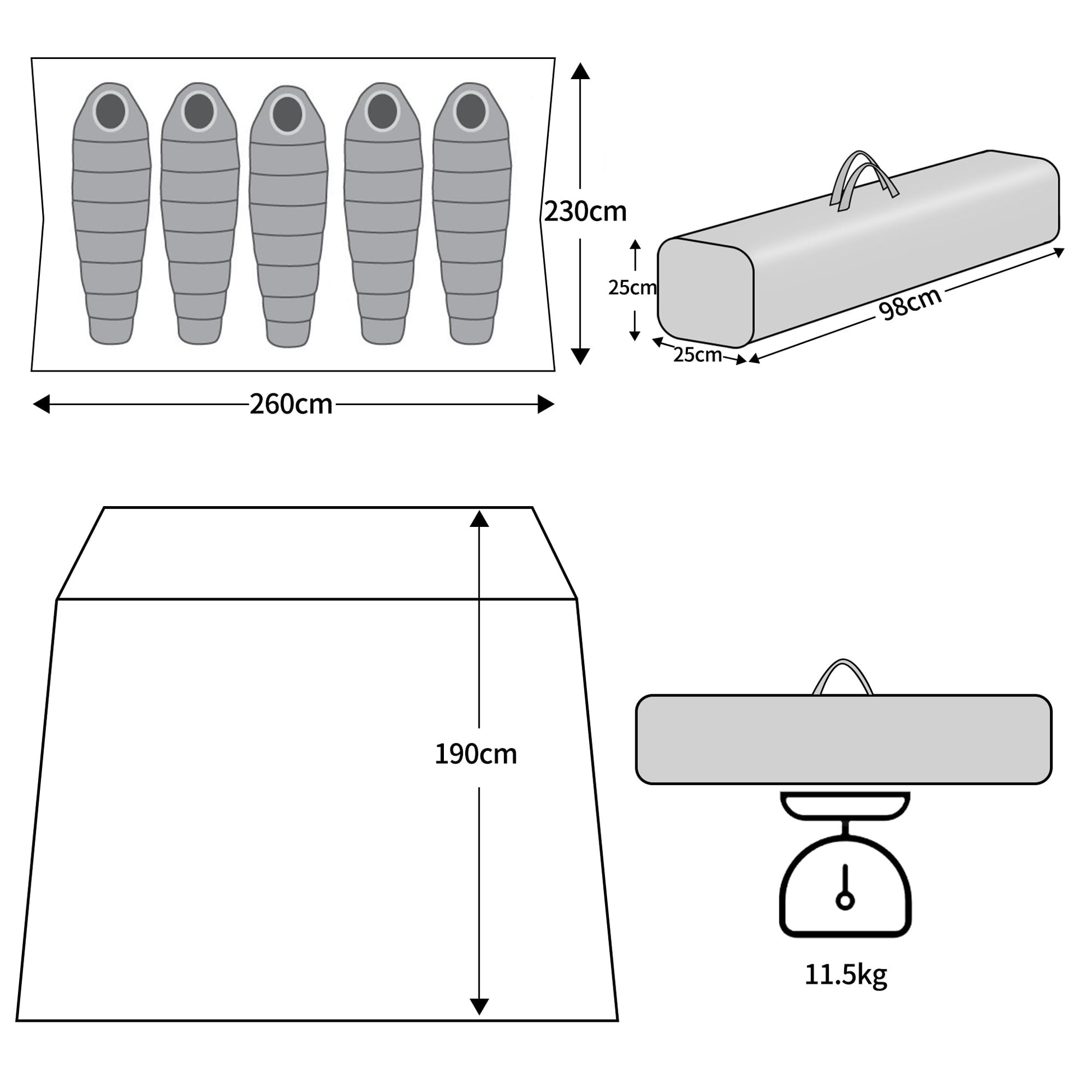 - PACKAGING: Camping tent weighs 26.45 lbs, center height 6.23 feet. Tent size: 260*230*190 cm, Package size: 98*25*25 cm. Spacious enough for family camping, includes 1 outer tent, 1 inner tent, 1 projection screen, 1 ground spike hammer, 2 stainless steel foyer poles, 9 ropes, 22 lighted ground spikes, 2 storage bags. Camping tents with organizer bags make it effortless to keep everything organized. If you have any questions, we promise to resolve any issues promptly.