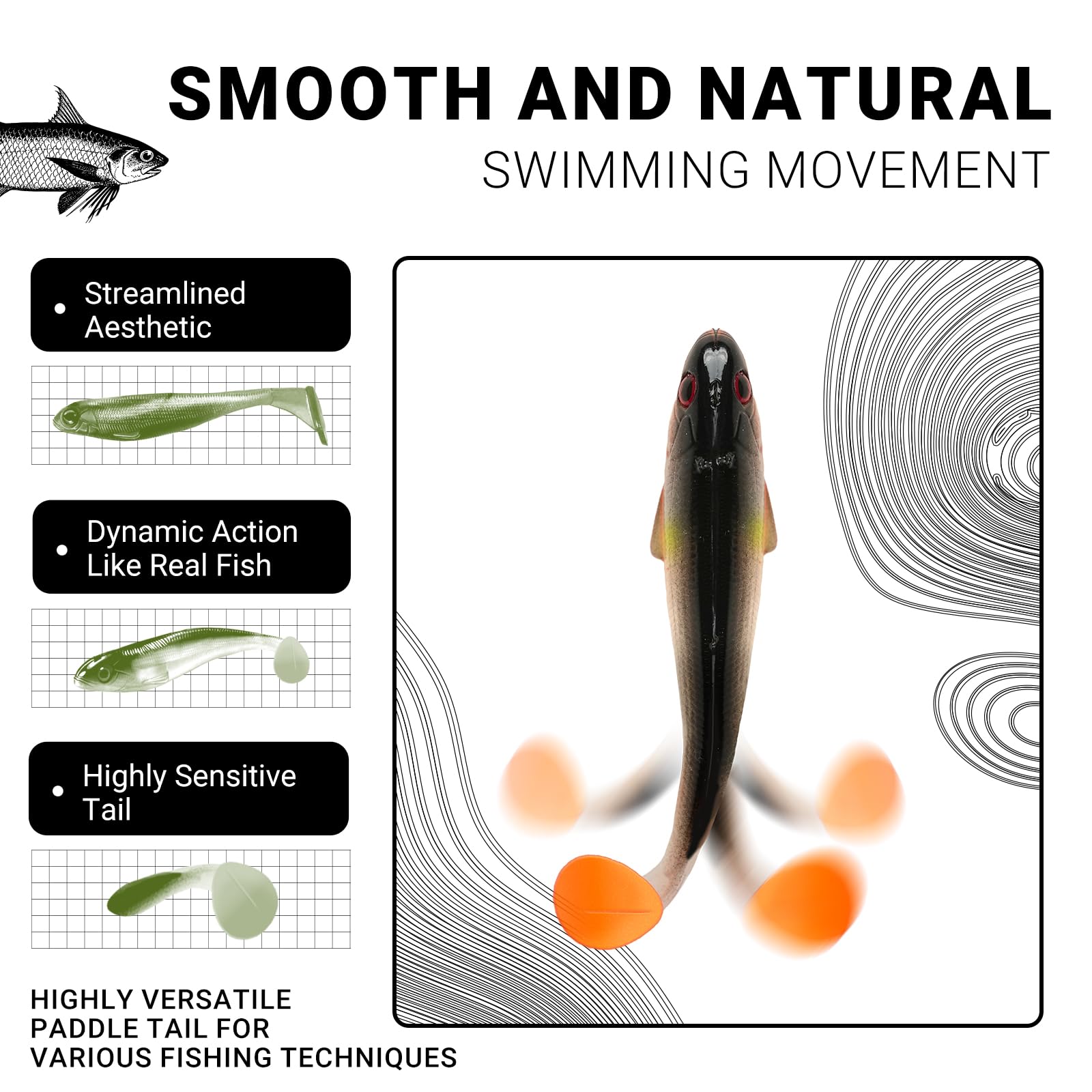 - Equipped with sharp Mustad 1# jig hooks, AQUAVEXIS Swimbaits provide precise hookups, making them perfect for bass swimbaits and other species. Their balanced design ensures that the paddle tail swim baits swim naturally and attract fish like small fishing lures, bass fishing lures for freshwater, and crappie bait. Ideal for fishing tackle sets, these lures ensure maximum performance, whether for lake trout jigs or fishing bait.