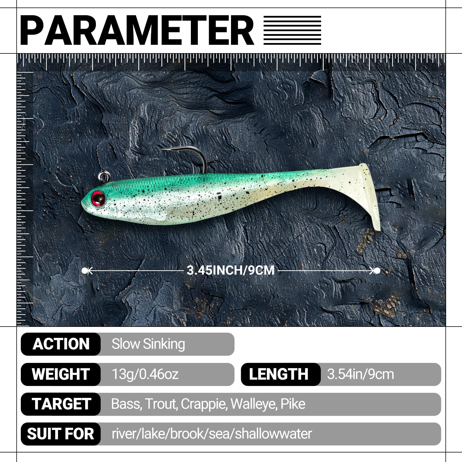 3.5In 0.42Oz Pre-Rigged Swim Baits for Bass Fishing - Jig Heads Soft Plastic Walleye Lures, Paddle Tail Swimbaits for Bass, Crappie & Trout Lures, Fishing Bait for Saltwater & Freshwater