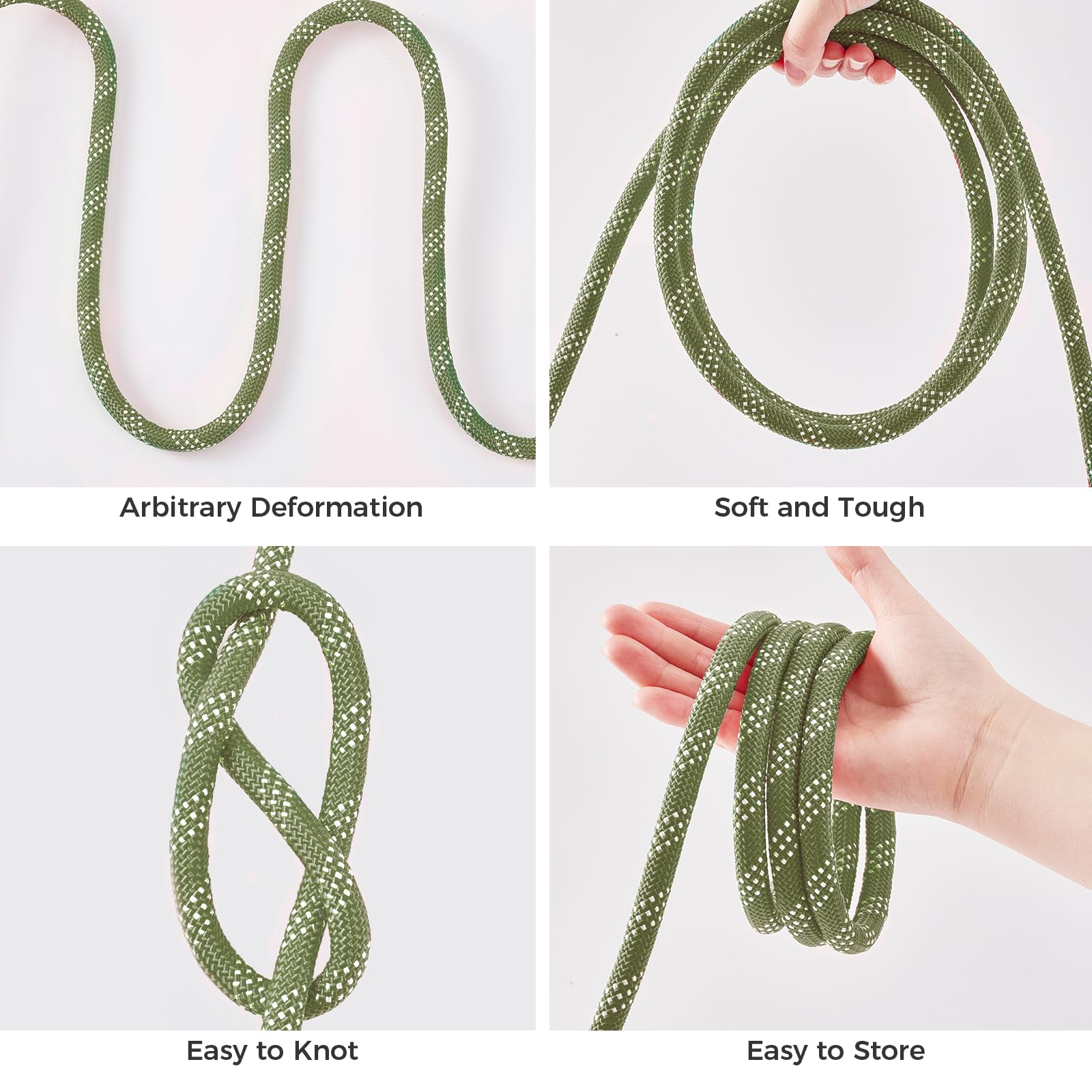- Durability: This 3/8 inch rock climbing rope constructedd from high-quality polyester fiber, highly durable, providing long-lasting performance even in tough conditions.