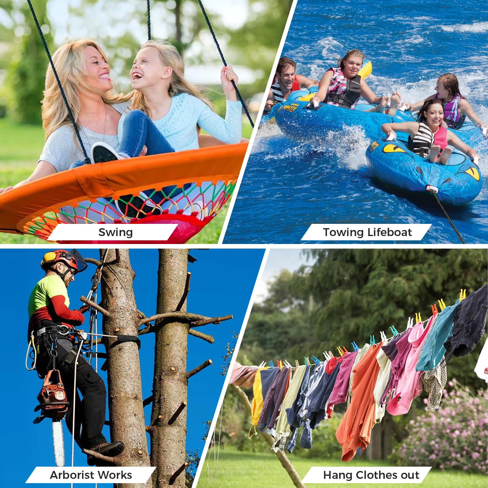 - Versatile: Strong braided rope which is lightweight and multi-purpose, will be convenient to carry and use. It will be suitable for lifting, tree artist rigging, climbing, ship anchor, car traction, sailing, swing, etc.