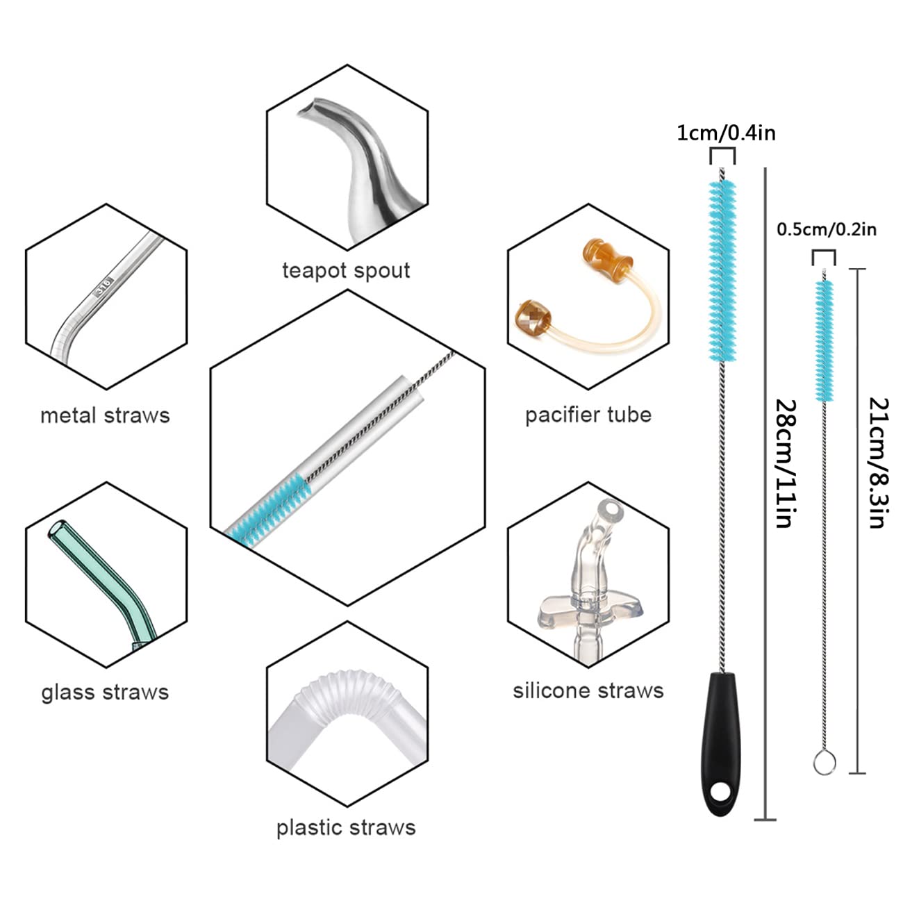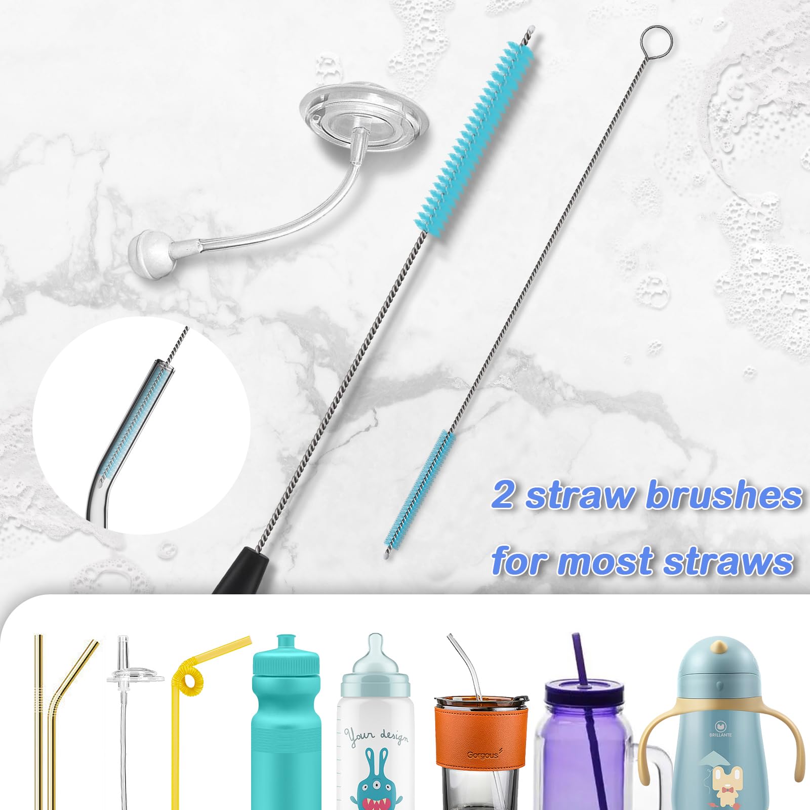 - ✅SIZE STRAW BRUSH: The set also includes 2 straw brushes, the large straw brush is 10.8 inches/27.5cm long for easy cleaning of sports water bottles thermos bottle straws, and the small straw brush is 8 inches/20.5cm long for microscopic holes via straw cleaning and keeping your small and large straws in their cleanliness.