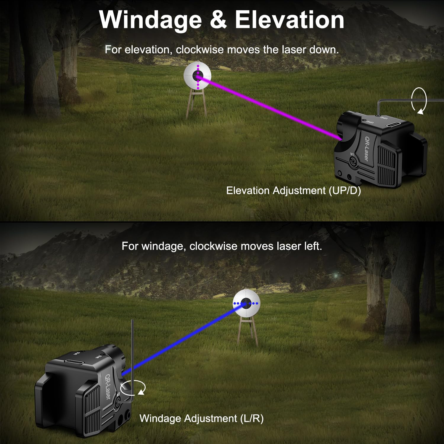 - LIGHTWEIGHT & COMPACT & DURABLE - The purple blue laser light combo adopt Rugged Anode Oxidation Aviation Aluminum material. This allows the laser beam for handgun to withstand strong impact and vibration, and will not lose after calibration. IPX6 waterproof ensures durability in rainy conditions, can provide better assistance to users in all situations.